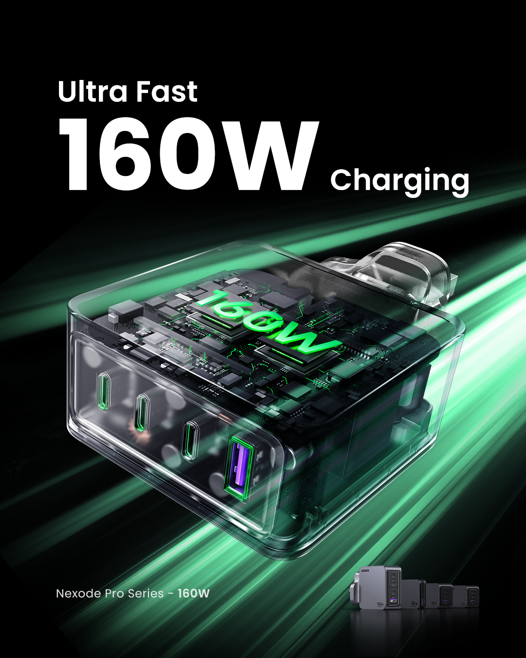 - "4-in-1 160W Smart Charging: With 3 USB C ports and 1 USB A port, the UGREEN Nexode Pro charger supports fast charging for 4 devices at the same time with an intelligent current distribution system, providing a total of up to 160W power