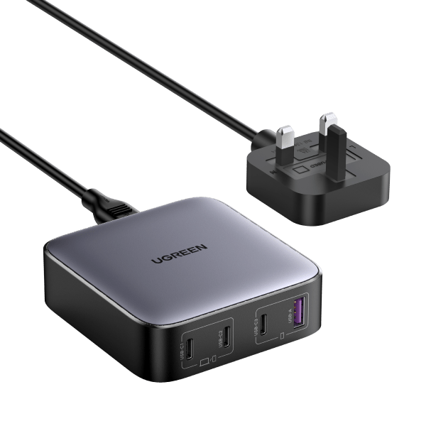 Ugreen Nexode. Charger type: Indoor, Power source type: AC, Charger compatibility: Universal. Input voltage: 100 - 240 V, Maximum output voltage: 10 V. USB Type-C ports quantity: 3, Fast charging. Cable length: 2 m, Product colour: Black