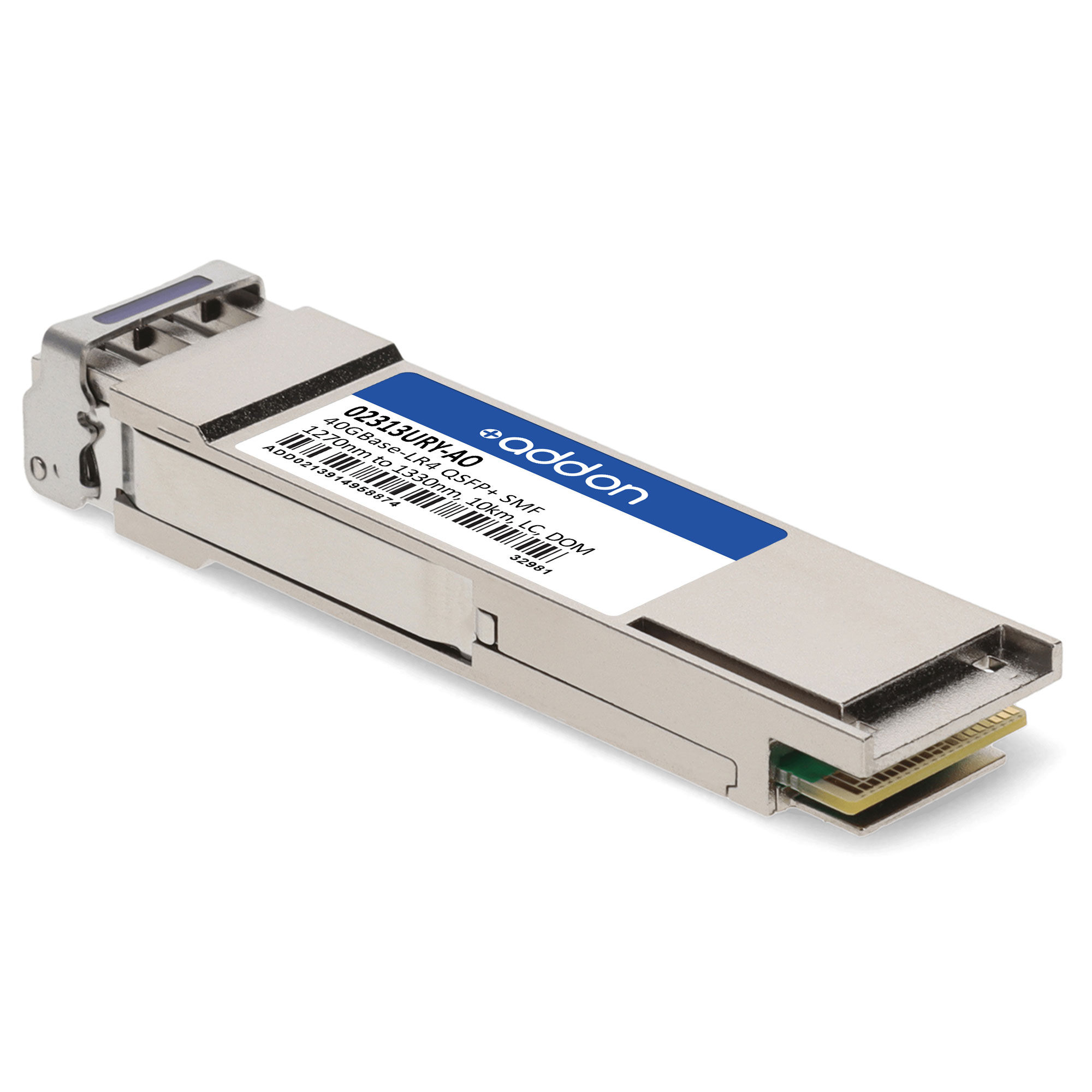 AddOn Networks 02313URY-AO. SFP transceiver type: Fiber optic, Maximum data transfer rate: 40000 Mbit/s, Interface type: QSFP+. Product colour: Silver, Form factor: QSFP+, Brand compatibility: Huawei. Compliance certificates: CE, Network Equipment Building Standards (NEBS), REACH, RoHS, Trade Agreements Act (TAA), WEEE. Package width: 69.8 mm, Package depth: 120.6 mm, Package height: 30.5 mm