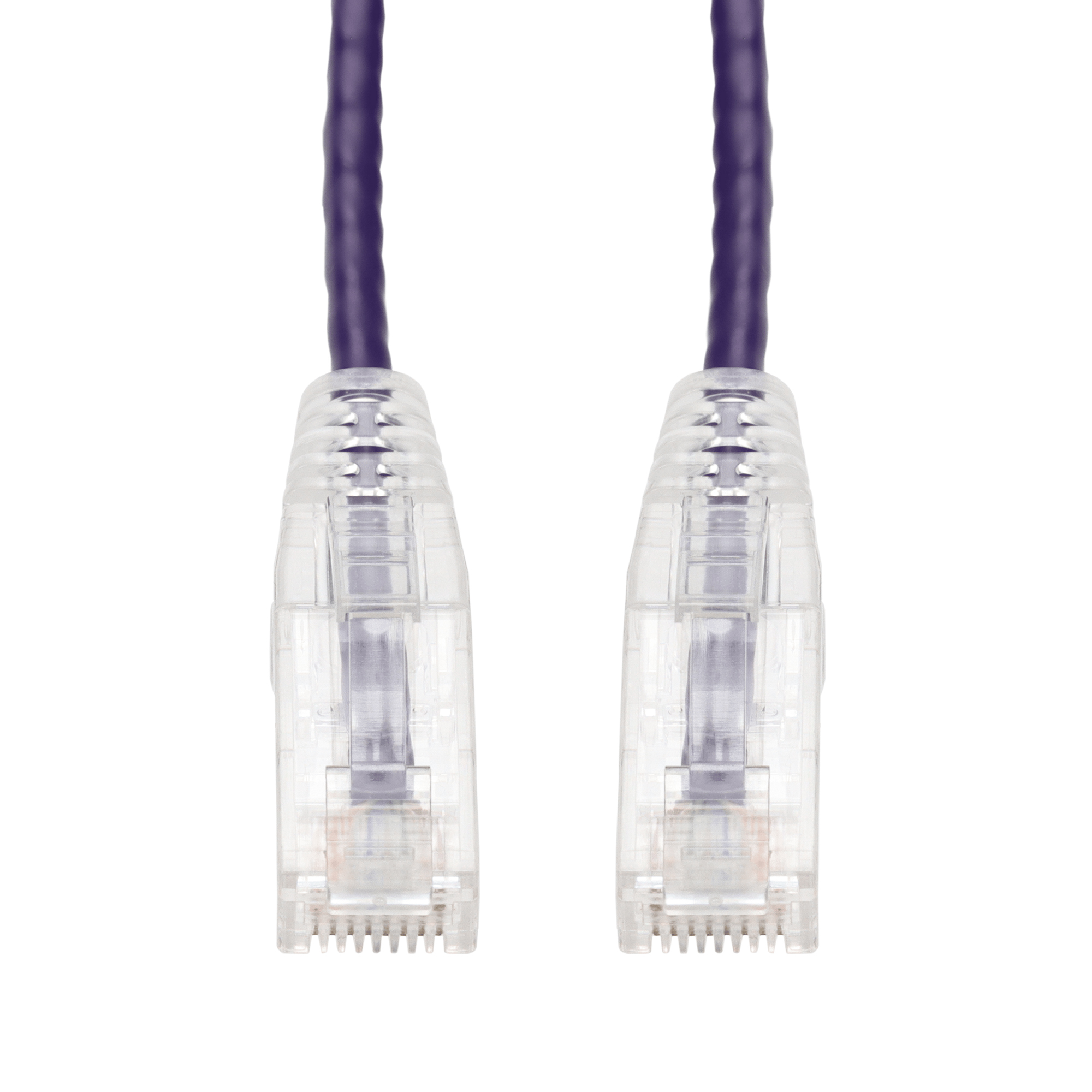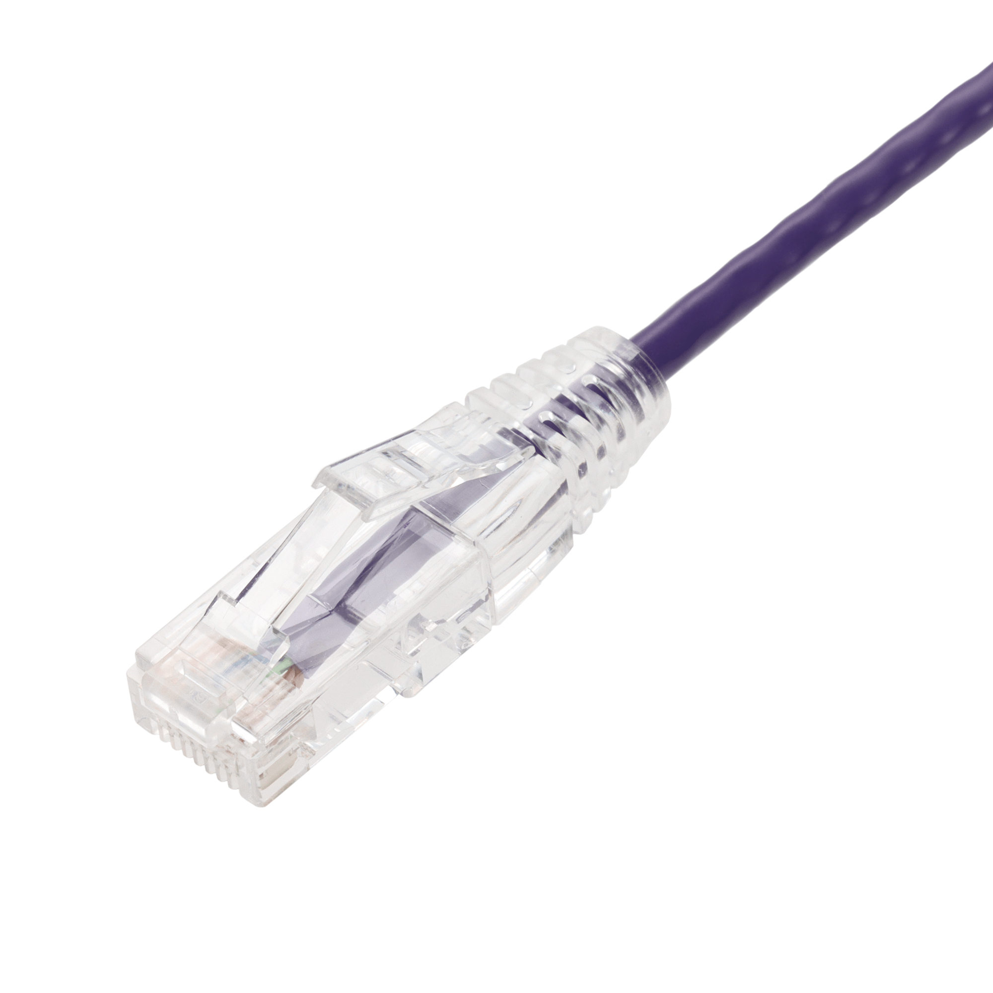 AddOn Networks 27ft Purple CAT 6 Slim PVC Ethernet Cable Snagless Clear-Claw RJ-45 M/M. Cable length: 8.23 m, Cable standard: Cat6, Cable shielding: U/UTP (UTP), Connector 1: RJ-45, Connector 2: RJ-45, Data transfer rate: 10000 Mbit/s, Product colour: Purple