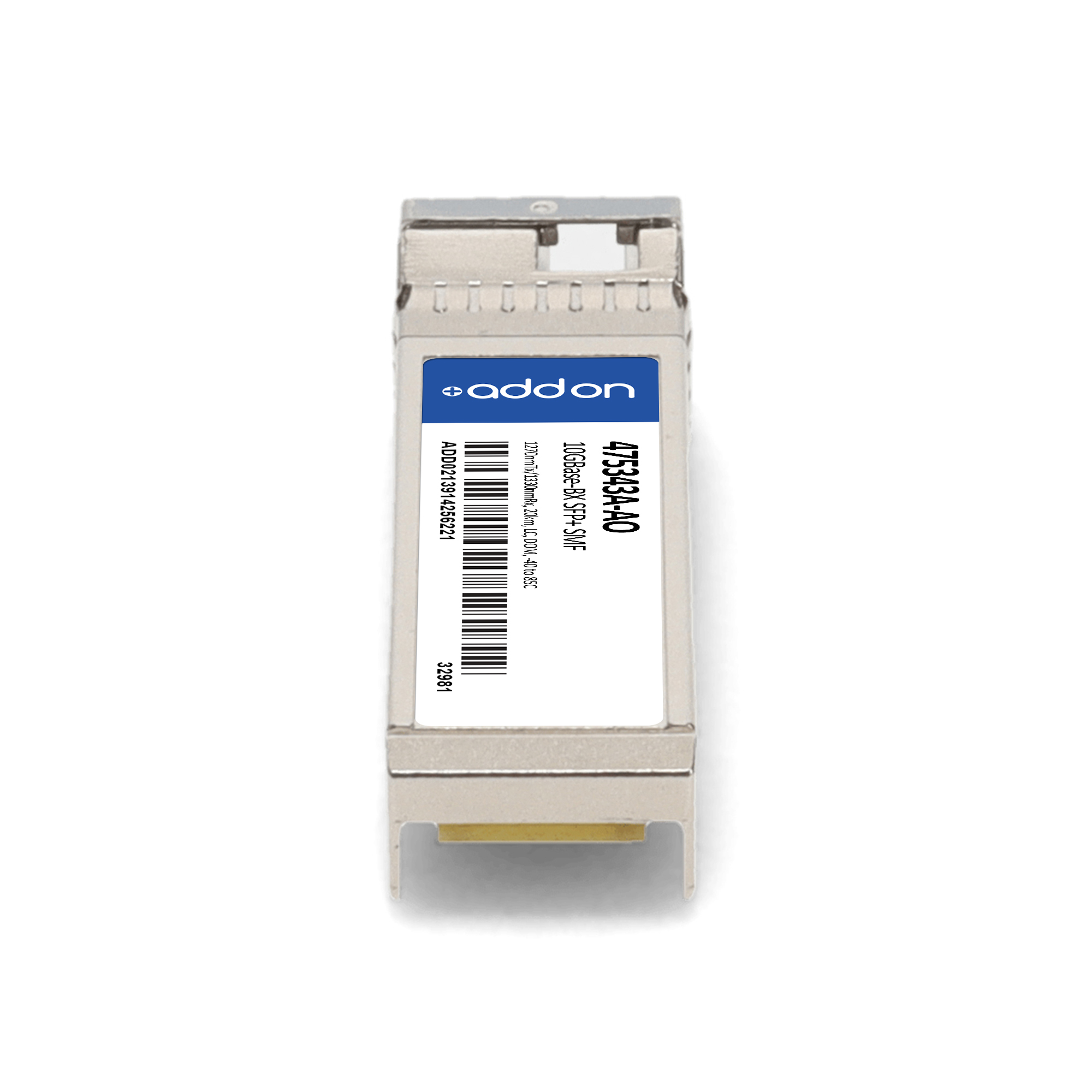 AddOn Networks 475343A-AO. SFP transceiver type: Fiber optic, Maximum data transfer rate: 10000 Mbit/s, Interface type: SFP+. Form factor: SFP+, Brand compatibility: Alcatel-Lucent / Nokia. Compliance certificates: Trade Agreements Act (TAA). Country of origin: United Kingdom, United States