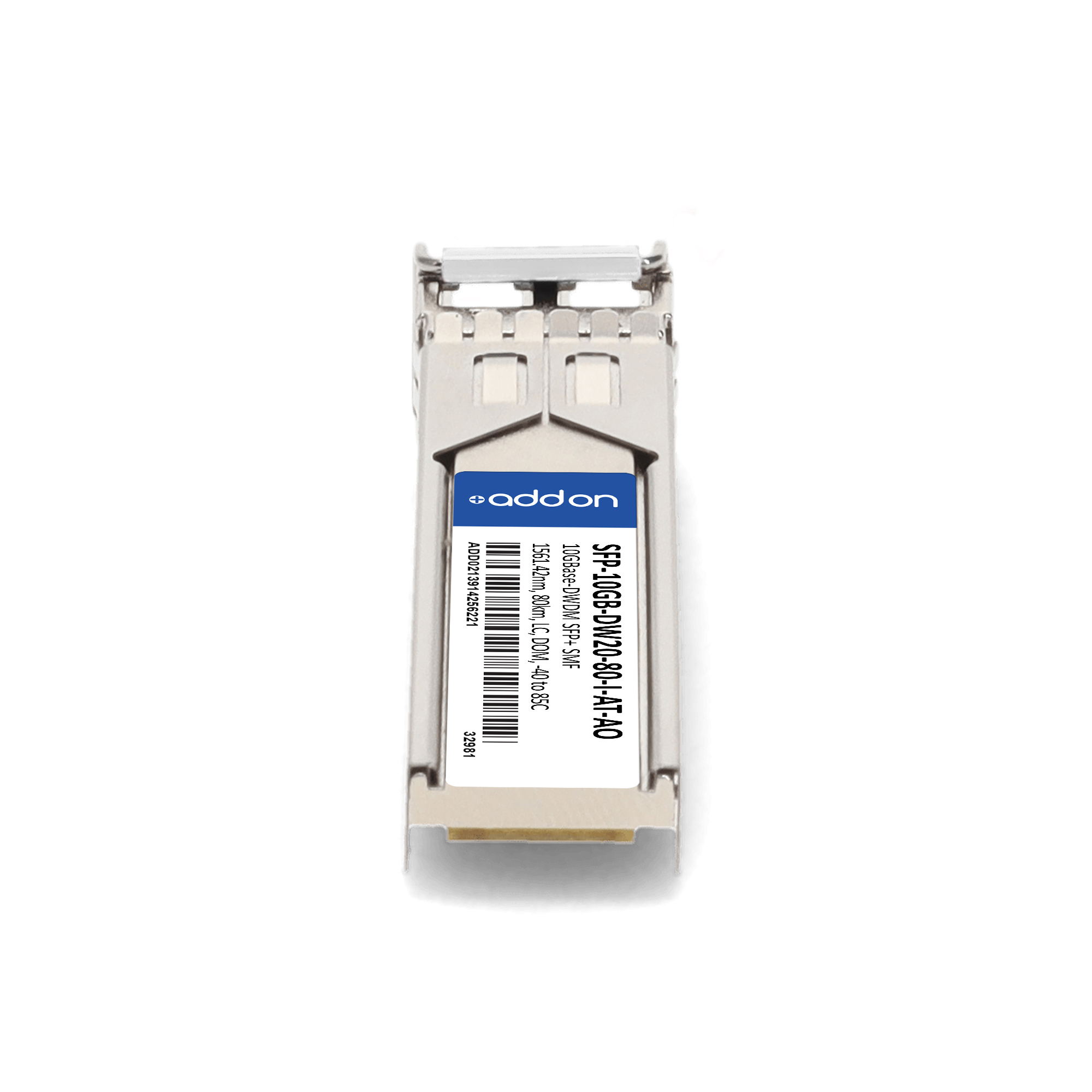AddOn Networks ADTRAN Compatible TAA 10GBase-DWDM 100GHz SFP+ Transceiver (SMF, 1561.42nm, 80km, LC, DOM, -40 to 85C). SFP transceiver type: Fiber optic, Maximum data transfer rate: 10000 Mbit/s, Interface type: SFP+. Product colour: Silver, Form factor: SFP+, Brand compatibility: Adtran. Compliance certificates: Trade Agreements Act (TAA). Quantity per pack: 1 pc(s). Package width: 70 mm, Package depth: 121 mm, Package height: 30 mm