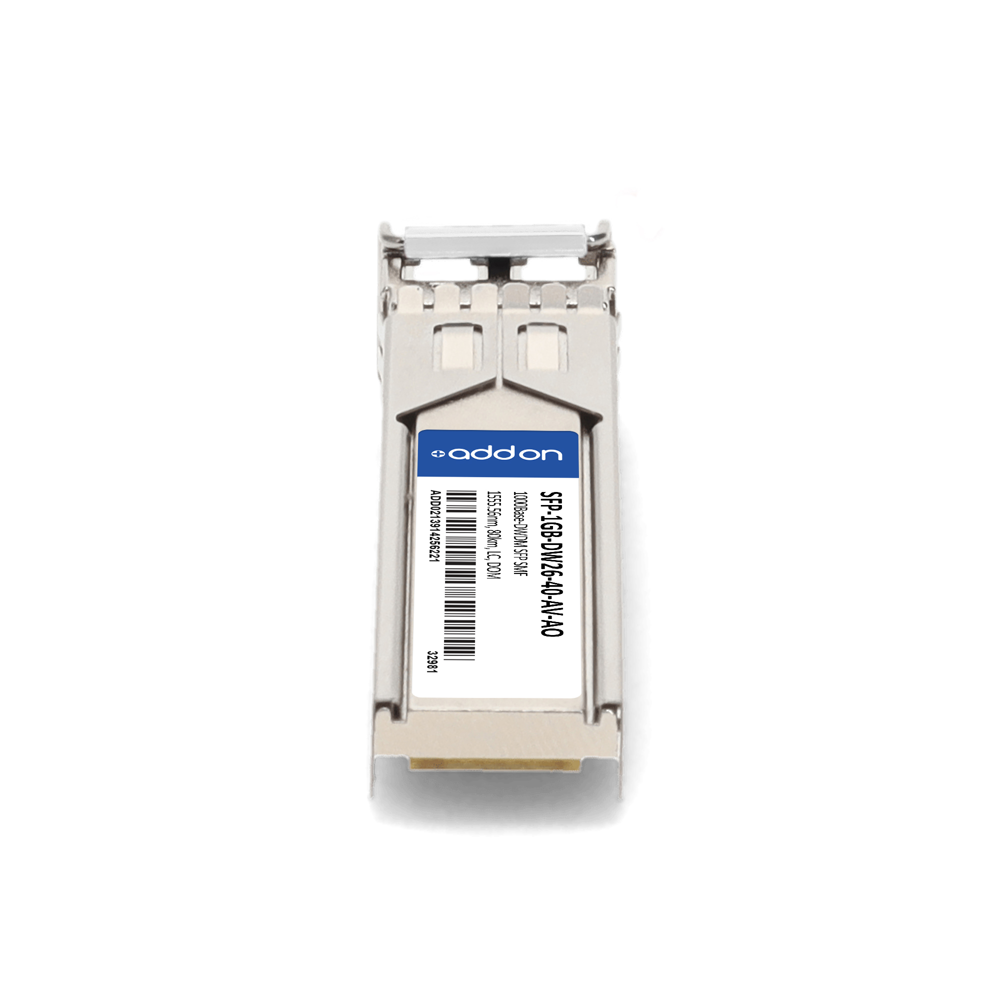 AddOn Networks ADVA Compatible TAA 1000Base-DWDM SFP Transceiver C-Band 100GHz (SMF, 1555.56nm, 40km, LC, DOM). SFP transceiver type: Fiber optic, Maximum data transfer rate: 1000 Mbit/s, Interface type: SFP. Product colour: Silver, Form factor: SFP, Brand compatibility: ADVA. Compliance certificates: Trade Agreements Act (TAA). Quantity per pack: 1 pc(s). Package width: 70 mm, Package depth: 121 mm, Package height: 30 mm