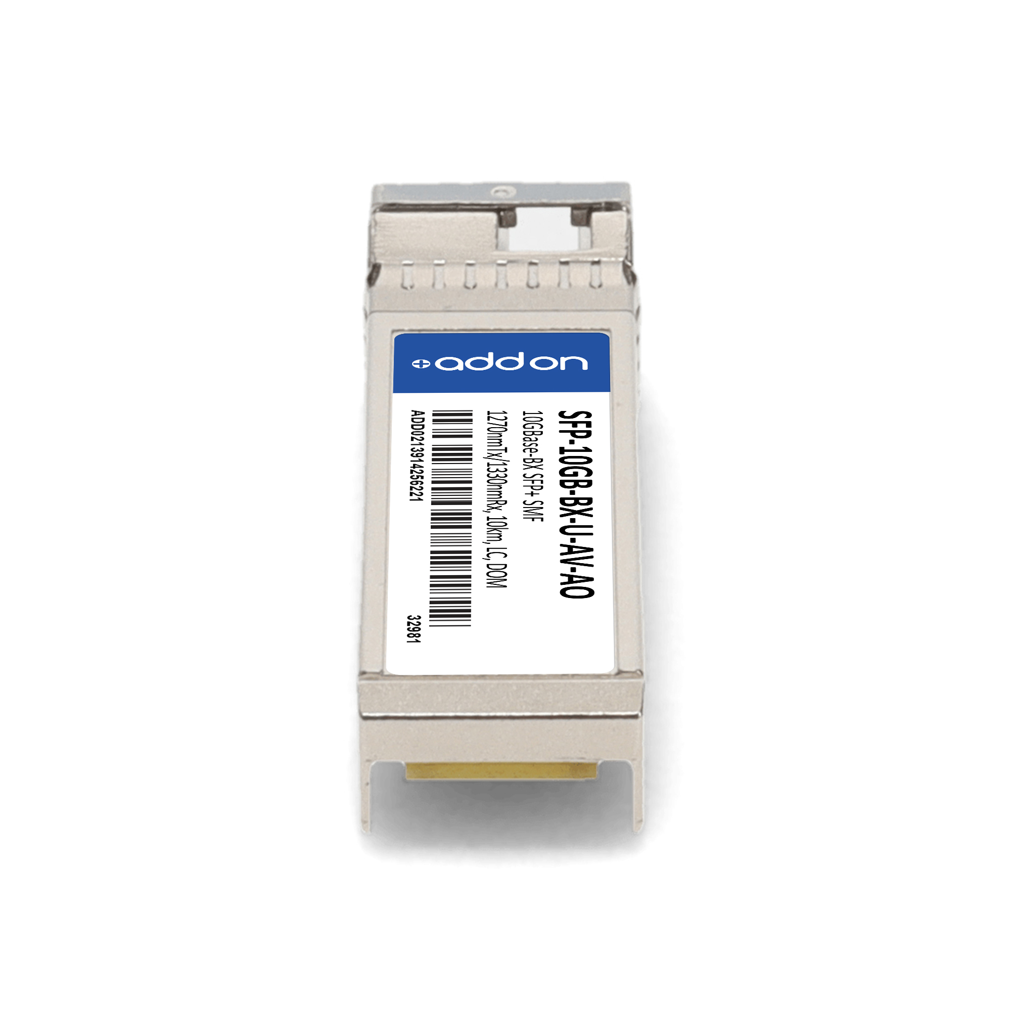 AddOn Networks ADVA Compatible TAA 10GBase-BX SFP+ Transceiver (SMF, 1270nmTx/1330nmRx, 10km, LC, DOM). SFP transceiver type: Fiber optic, Maximum data transfer rate: 10000 Mbit/s, Interface type: SFP+. Form factor: SFP+, Brand compatibility: ADVA. Compliance certificates: Trade Agreements Act (TAA). Quantity per pack: 1 pc(s). Package width: 70 mm, Package depth: 121 mm, Package height: 30 mm