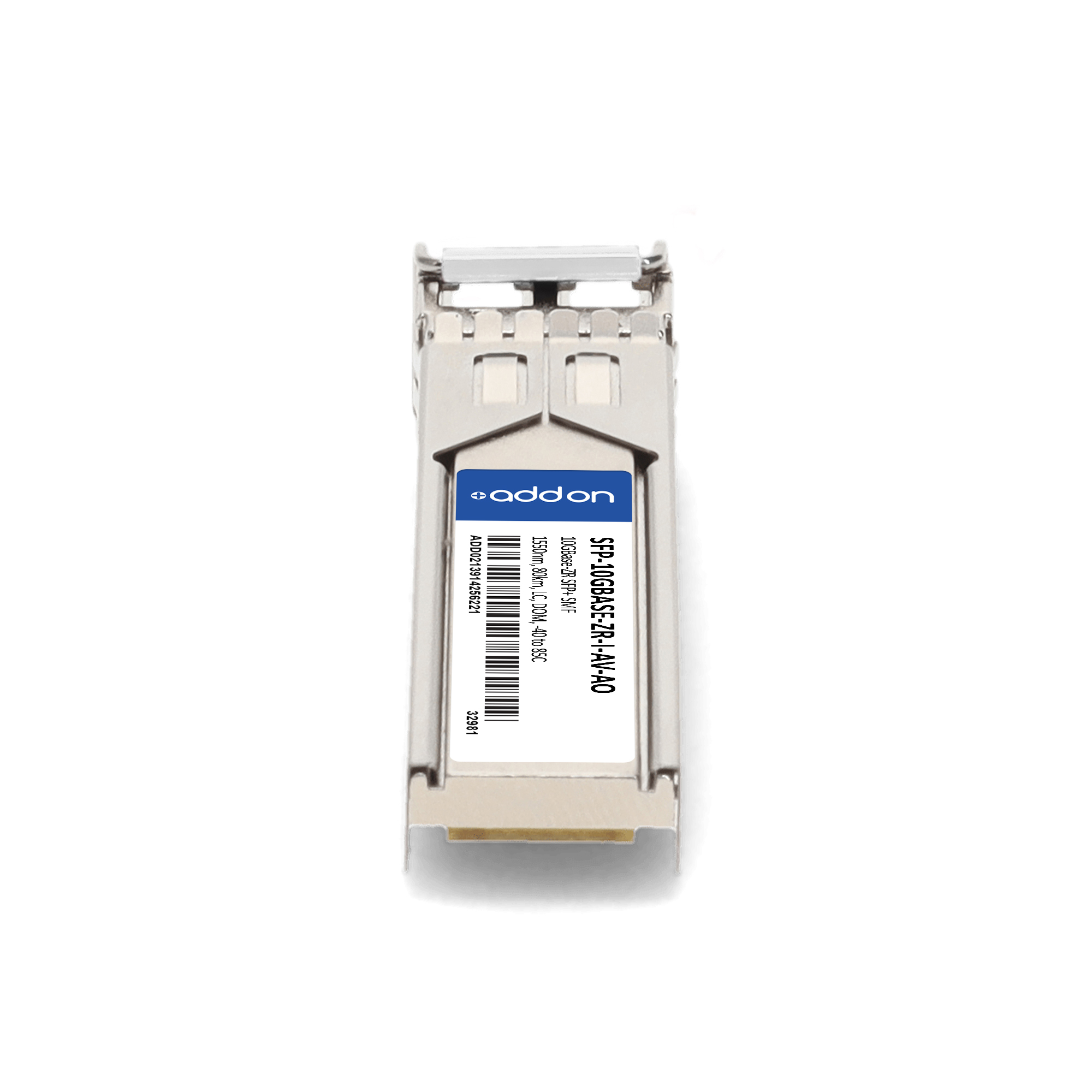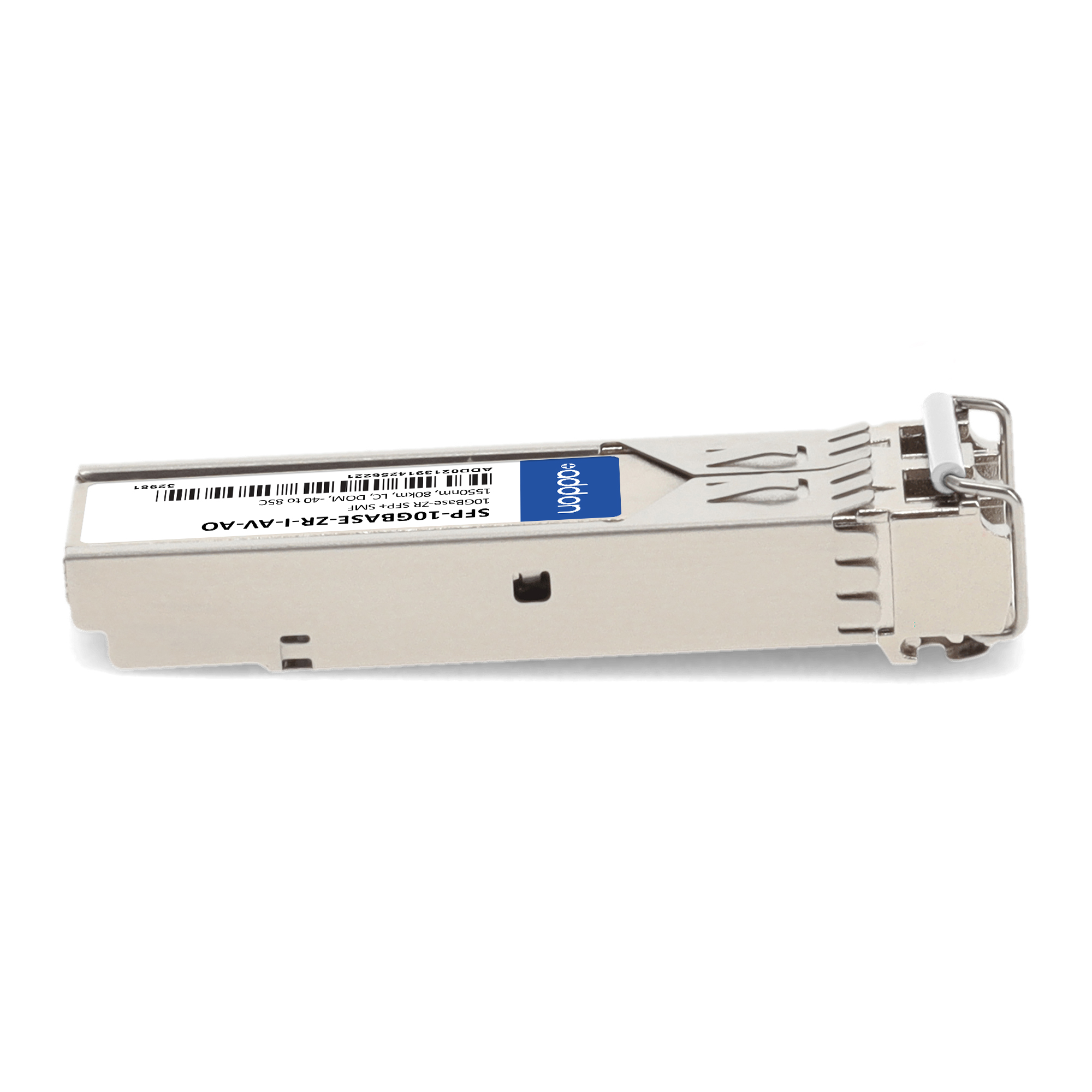 AddOn Networks ADVA Compatible TAA 10GBase-ZR SFP+ Transceiver (SMF, 1550nm, 80km, LC, DOM, -40 to 85C). SFP transceiver type: Fiber optic, Maximum data transfer rate: 10000 Mbit/s, Interface type: SFP+. Form factor: SFP+, Brand compatibility: ADVA. Compliance certificates: Trade Agreements Act (TAA). Quantity per pack: 1 pc(s). Package width: 70 mm, Package depth: 121 mm, Package height: 30 mm