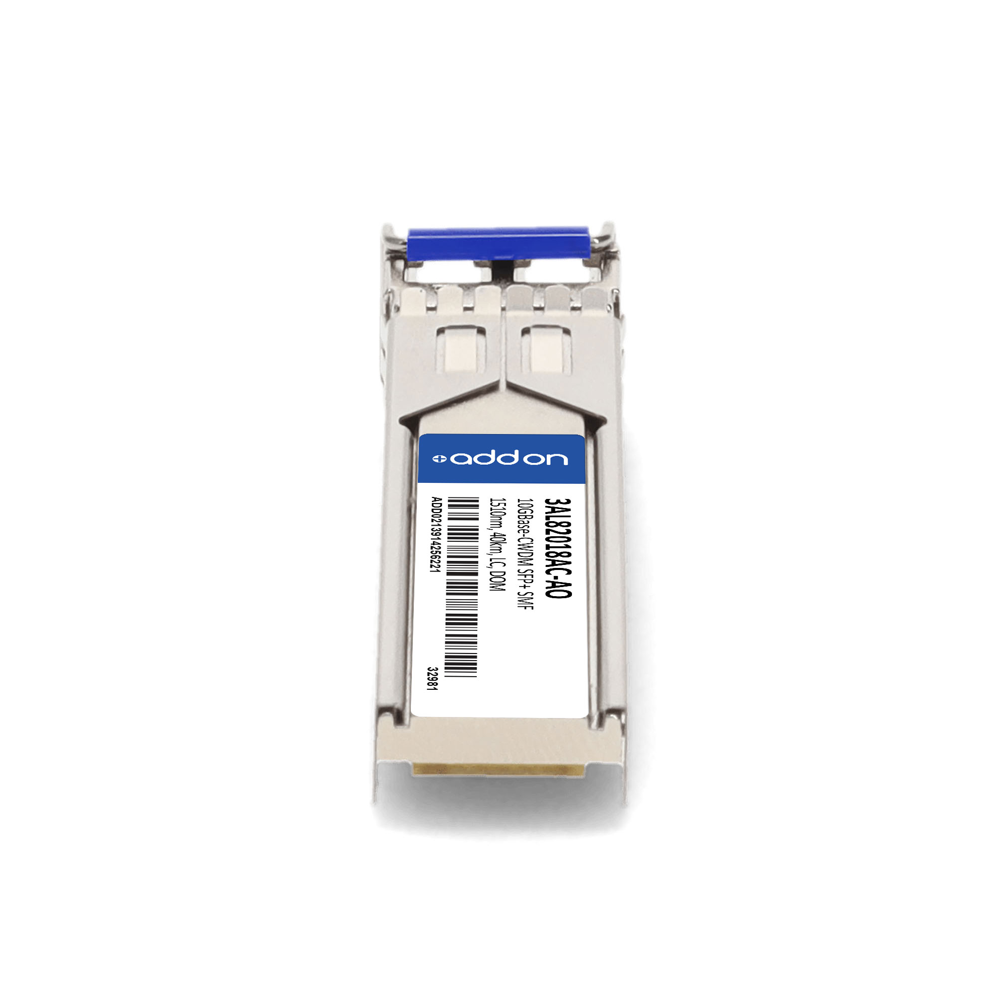 AddOn Networks Alcatel-Lucent Nokia 3AL82018AC Compatible 10GBase-CWDM SFP+ Transceiver (SMF, 1510nm, 40km, LC, DOM, -5 to +85C). SFP transceiver type: Fiber optic, Maximum data transfer rate: 10000 Mbit/s, Interface type: SFP+. Form factor: SFP+, Brand compatibility: Alcatel-Lucent / Nokia, Compatibility: 3AL82018AC. Compliance certificates: Trade Agreements Act (TAA). Quantity per pack: 1 pc(s). Package width: 70 mm, Package depth: 121 mm, Package height: 30 mm