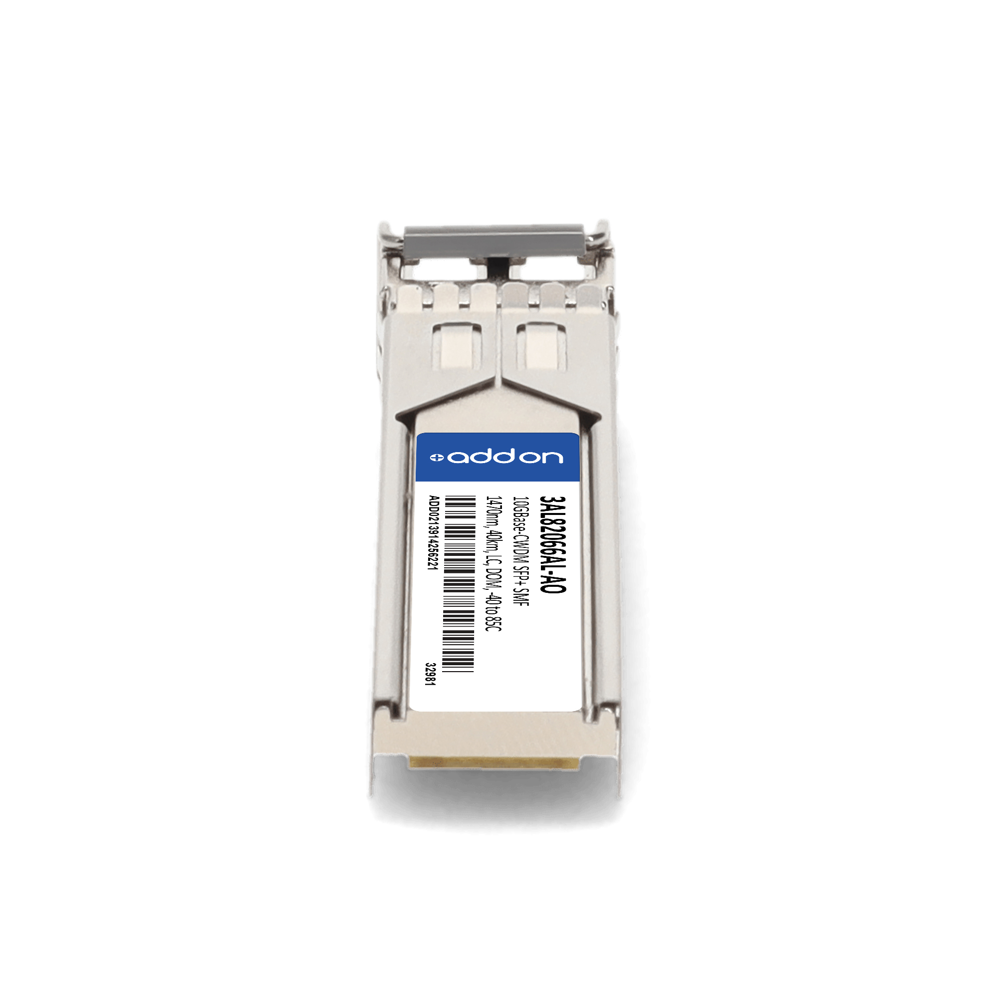 AddOn Networks Alcatel-Lucent Nokia 3AL82066AL Compatible TAA 10GBase-CWDM SFP+ Transceiver (SMF, 1470nm, 40km, LC, DOM, -40 to 85C). SFP transceiver type: Fiber optic, Maximum data transfer rate: 10000 Mbit/s, Interface type: SFP+. Form factor: SFP+, Brand compatibility: Alcatel-Lucent / Nokia, Compatibility: 3AL82066AL. Compliance certificates: Trade Agreements Act (TAA). Quantity per pack: 1 pc(s). Package width: 70 mm, Package depth: 121 mm, Package height: 30 mm