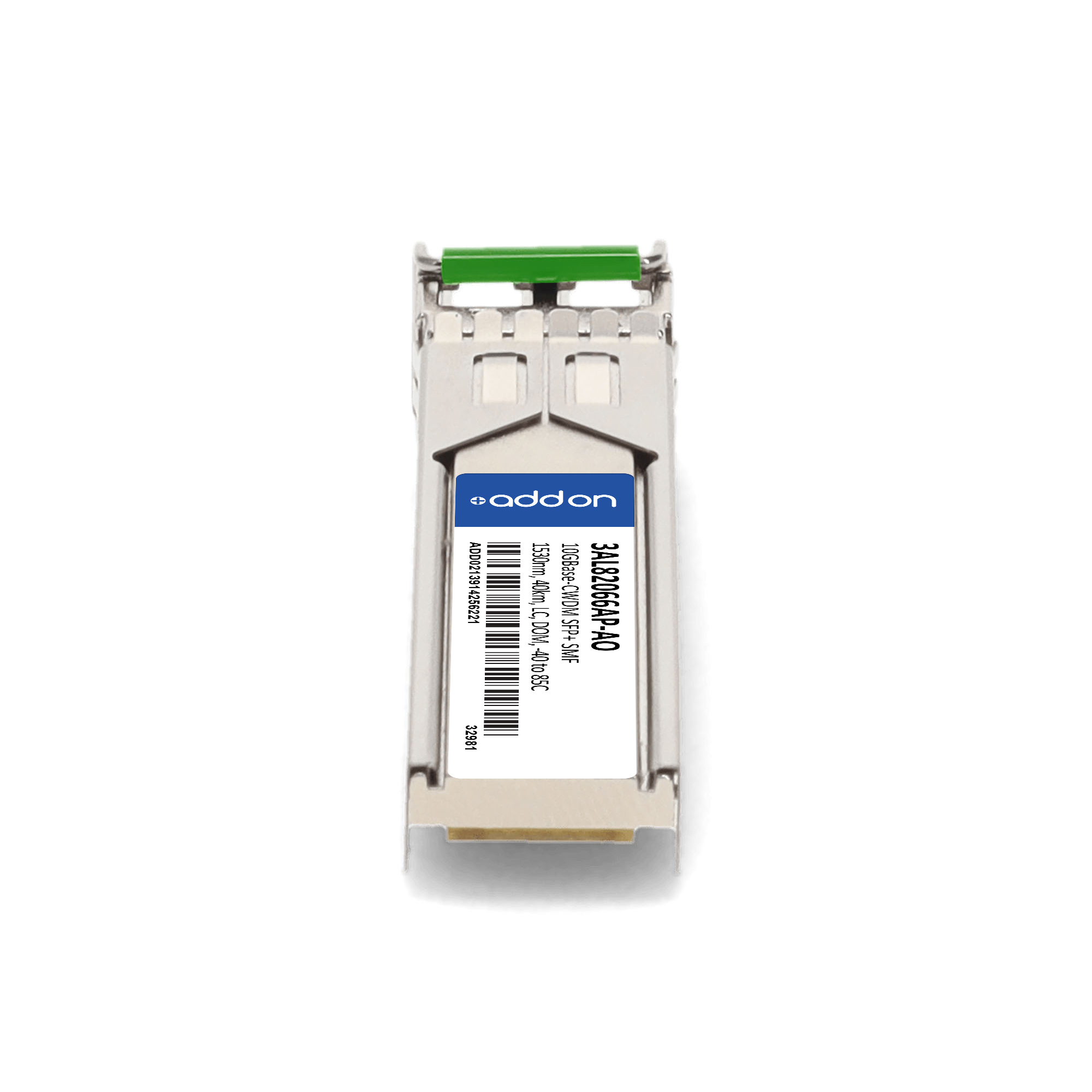 AddOn Networks Alcatel-Lucent Nokia 3AL82066AP Compatible TAA 10GBase-CWDM SFP+ Transceiver (SMF, 1530nm, 40km, LC, DOM, -40 to 85C). SFP transceiver type: Fiber optic, Maximum data transfer rate: 10000 Mbit/s, Interface type: SFP+. Form factor: SFP+, Brand compatibility: Alcatel-Lucent / Nokia, Compatibility: 3AL82066AP. Compliance certificates: Trade Agreements Act (TAA). Quantity per pack: 1 pc(s). Package width: 70 mm, Package depth: 121 mm, Package height: 30 mm