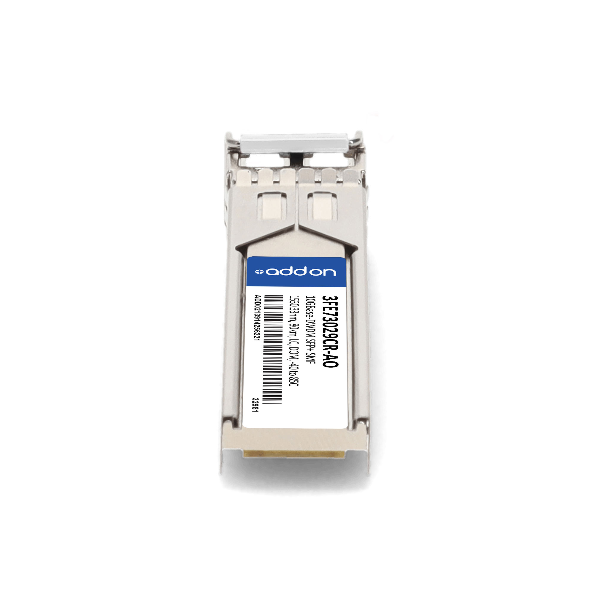 AddOn Networks Alcatel-Lucent Nokia 3FE73029CR Compatible TAA 10GBase-DWDM SFP+ Transceiver C-Band 100GHz (SMF, 1530.33nm, 80km, LC, DOM, -40 to 85C). SFP transceiver type: Fiber optic, Maximum data transfer rate: 10000 Mbit/s, Interface type: SFP+. Form factor: SFP+, Brand compatibility: Alcatel-Lucent / Nokia, Compatibility: 3FE73029CR. Compliance certificates: Trade Agreements Act (TAA). Quantity per pack: 1 pc(s). Package width: 70 mm, Package depth: 121 mm, Package height: 30 mm