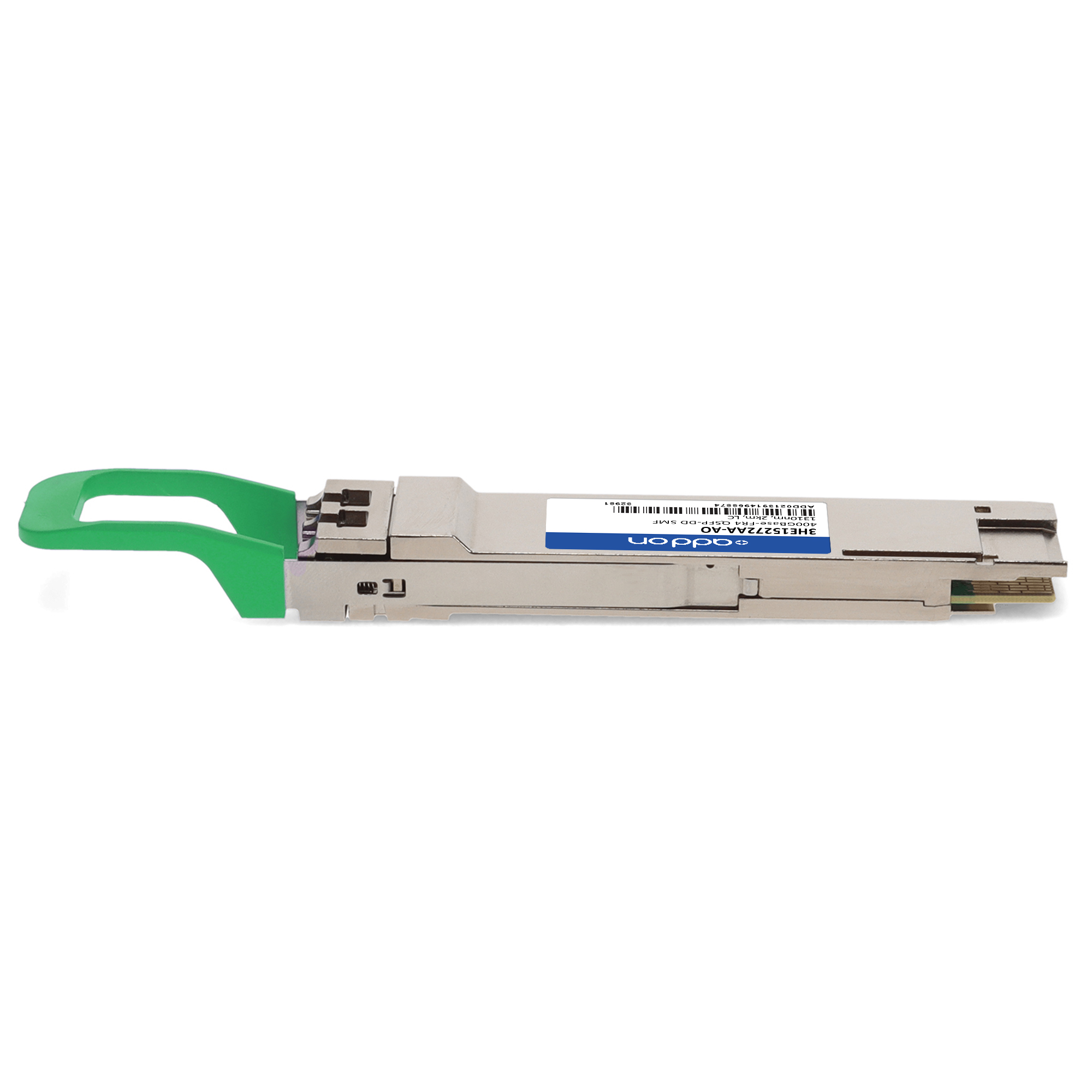 AddOn Networks Alcatel-Lucent Nokia 3HE15272AA Compatible TAA Compliant 400GBase-FR4 QSFP-DD Transceiver (SMF, 1310nm, 2km, LC, CMIS 4.0). SFP transceiver type: Fiber optic, Maximum data transfer rate: 400000 Mbit/s, Interface type: QSFP-DD. Product colour: Silver, Form factor: QSFP-DD, Brand compatibility: Alcatel-Lucent / Nokia. Compliance certificates: Trade Agreements Act (TAA). Quantity per pack: 1 pc(s). Package width: 70 mm, Package depth: 121 mm, Package height: 30 mm