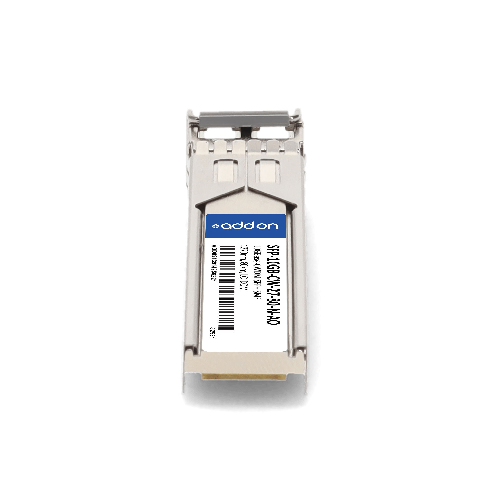 AddOn Networks Alcatel-Lucent Nokia Compatible TAA 10GBase-CWDM SFP+ Transceiver (SMF, 1270nm, 80km, LC, DOM). SFP transceiver type: Fiber optic, Maximum data transfer rate: 10000 Mbit/s, Interface type: SFP+. Form factor: SFP+, Brand compatibility: Alcatel-Lucent / Nokia, Compatibility: CWDM-SFP10G-1270-80. Compliance certificates: Trade Agreements Act (TAA). Quantity per pack: 1 pc(s). Package width: 70 mm, Package depth: 121 mm, Package height: 30 mm