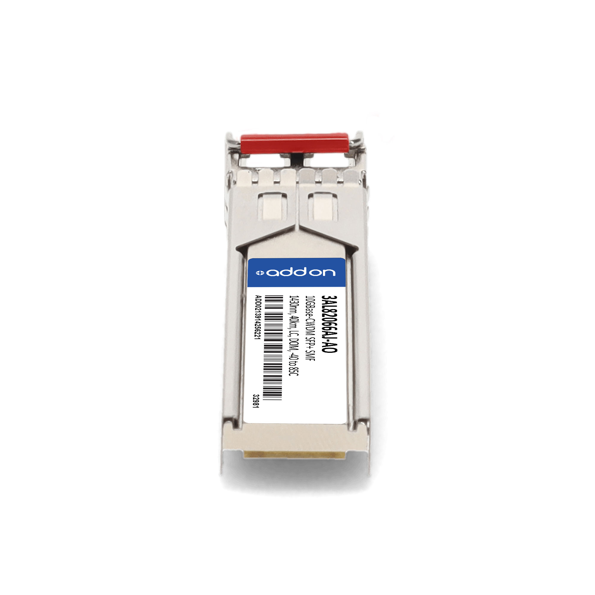 AddOn Networks Alcatel-Lucent Nokia Compatible TAA 10GBase-CWDM SFP+ Transceiver (SMF, 1430nm, 40km, LC, DOM, -40 to 85C). SFP transceiver type: Fiber optic, Maximum data transfer rate: 10000 Mbit/s, Interface type: SFP+. Form factor: SFP+, Brand compatibility: Alcatel-Lucent / Nokia, Compatibility: PAN-SFP-PLUS-ER-CW43. Compliance certificates: Trade Agreements Act (TAA). Quantity per pack: 1 pc(s). Package width: 70 mm, Package depth: 121 mm, Package height: 30 mm