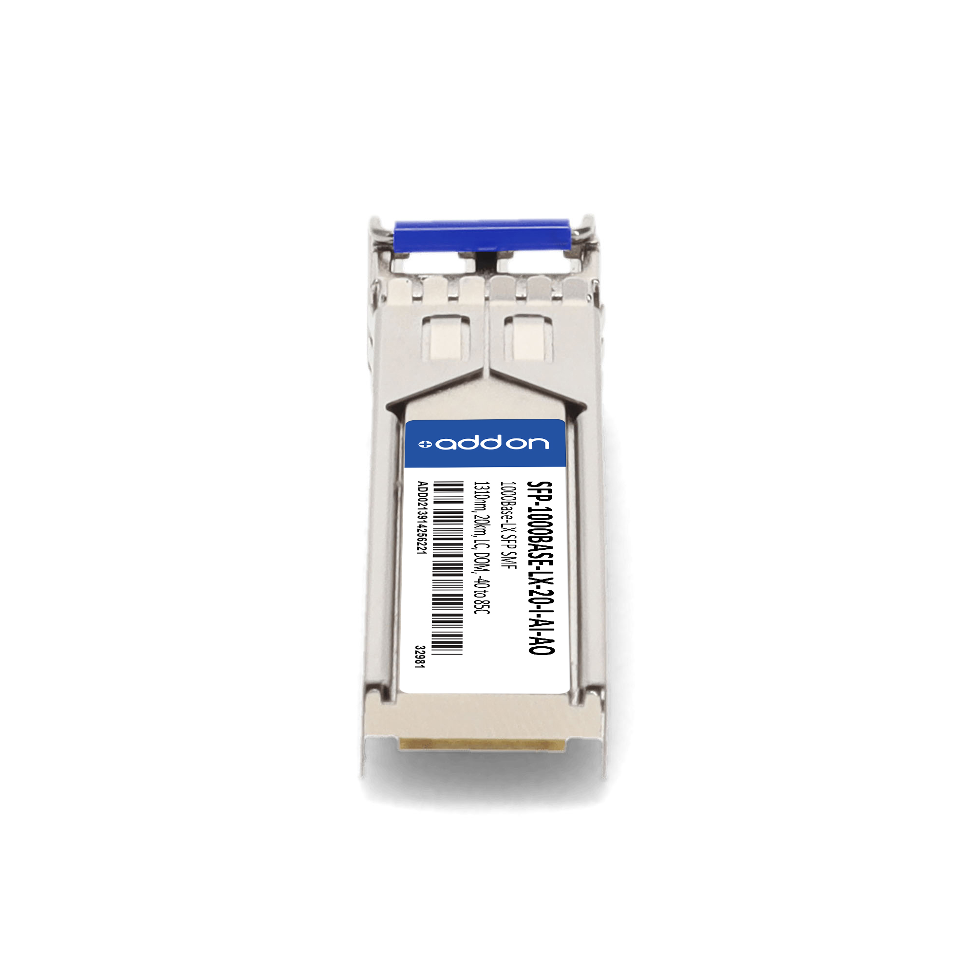 AddOn Networks Allied Telesis Compatible TAA 1000Base-LX SFP Transceiver (SMF, 1310nm, 20km, LC, DOM, -40 to 85C). SFP transceiver type: Fiber optic, Maximum data transfer rate: 1000 Mbit/s, Interface type: SFP. Form factor: SFP, Brand compatibility: Allied Telesis. Compliance certificates: Trade Agreements Act (TAA). Quantity per pack: 1 pc(s). Package width: 70 mm, Package depth: 121 mm, Package height: 30 mm