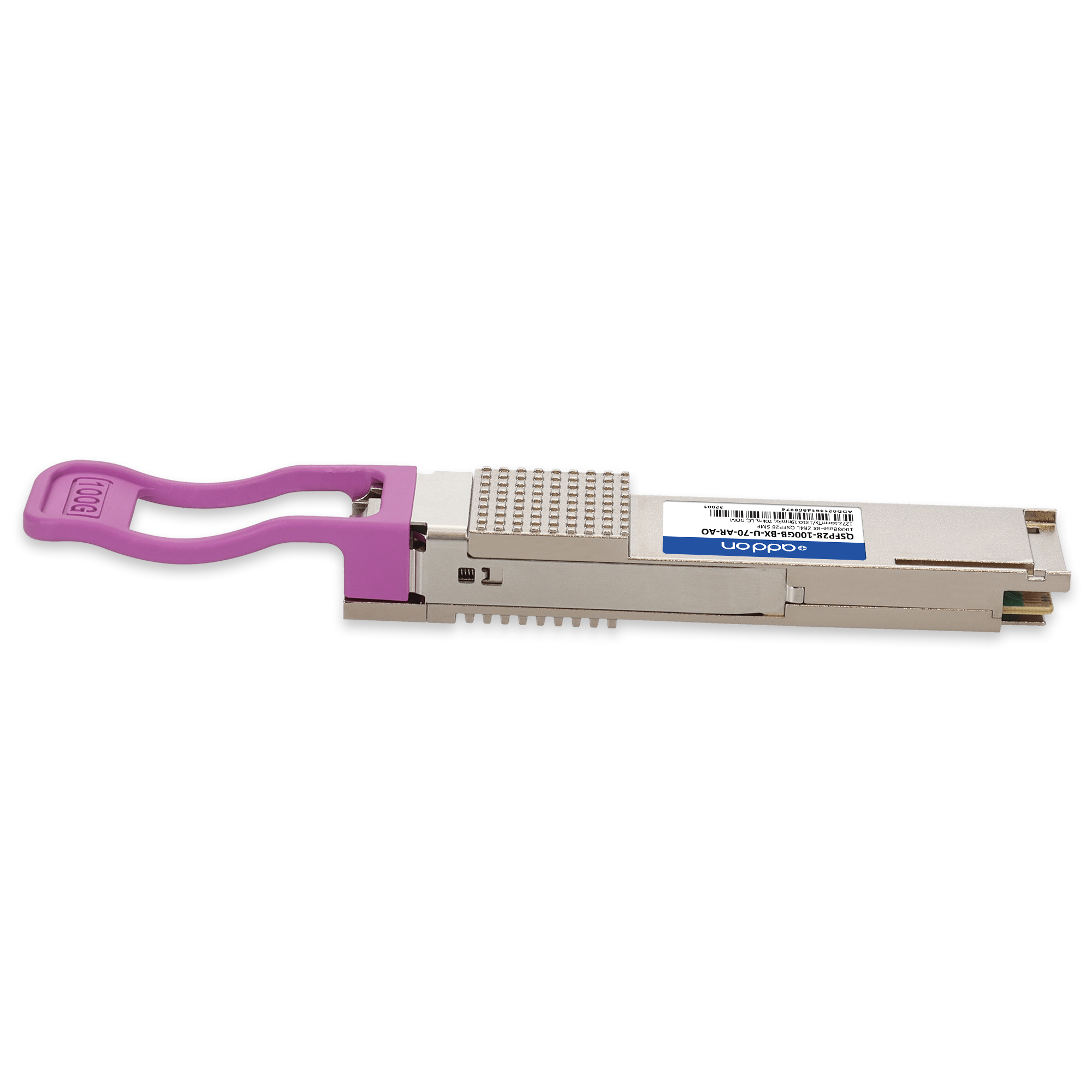 AddOn Networks Arista Networks Compatible TAA 100GBase-ZR4 Lite BX QSFP28 Transceiver (SMF, 1272.55nmTx/1310.19nmRx, 70km, LC, DOM). SFP transceiver type: Fiber optic, Maximum data transfer rate: 100000 Mbit/s, Interface type: QSFP28. Form factor: QSFP28, Brand compatibility: Arista Networks. Compliance certificates: Trade Agreements Act (TAA). Quantity per pack: 1 pc(s). Package width: 70 mm, Package depth: 121 mm, Package height: 30 mm