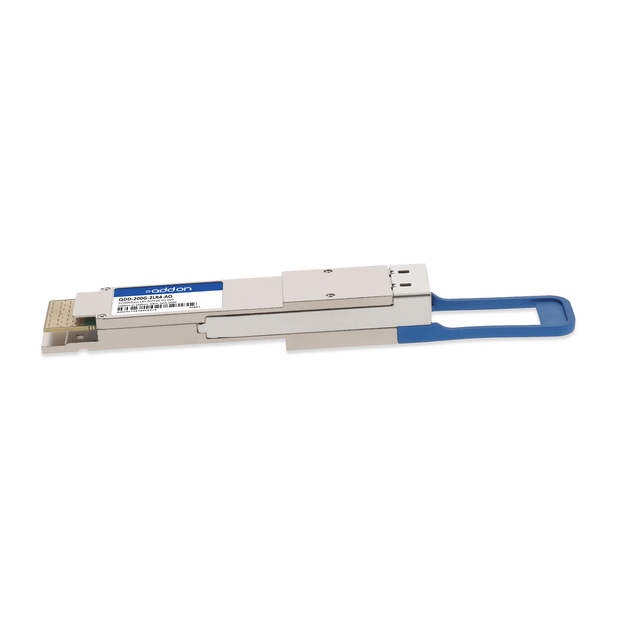 AddOn Networks Arista Networks QDD-200G-2LR4 Compatible TAA 2x100GBase-LR4 QSFP28-DD Transceiver (SMF, 1295nm to 1309nm, 10km, 2xCS, DOM). SFP transceiver type: Fiber optic, Maximum data transfer rate: 200000 Mbit/s, Interface type: QSFP28-DD. Form factor: QSFP28-DD, Brand compatibility: Arista Networks. Compliance certificates: Trade Agreements Act (TAA). Quantity per pack: 1 pc(s). Package width: 70 mm, Package depth: 121 mm, Package height: 30 mm