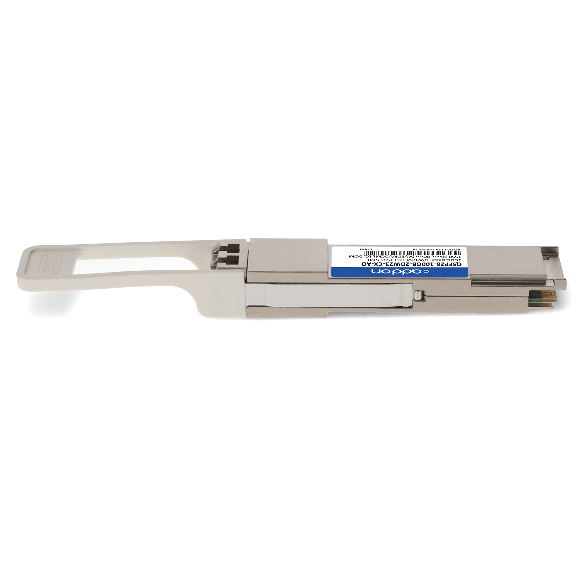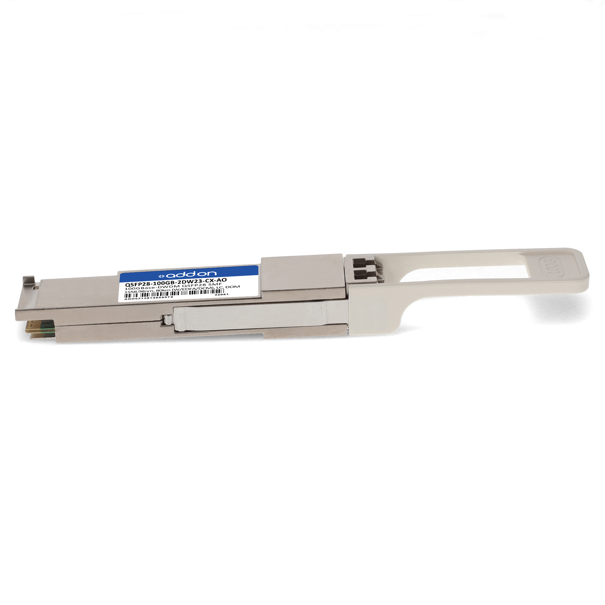 AddOn Networks Calix Compatible TAA 100GBase-DWDM PAM4 QSFP28 Transceiver C-Band (SMF, 1558.98nm, 80km w/EDFA/DCM, LC, DOM). SFP transceiver type: Fiber optic, Maximum data transfer rate: 100000 Mbit/s, Interface type: QSFP28. Product colour: Silver, Form factor: QSFP28, Brand compatibility: Calix. Compliance certificates: Trade Agreements Act (TAA). Quantity per pack: 1 pc(s). Package width: 70 mm, Package depth: 121 mm, Package height: 30 mm