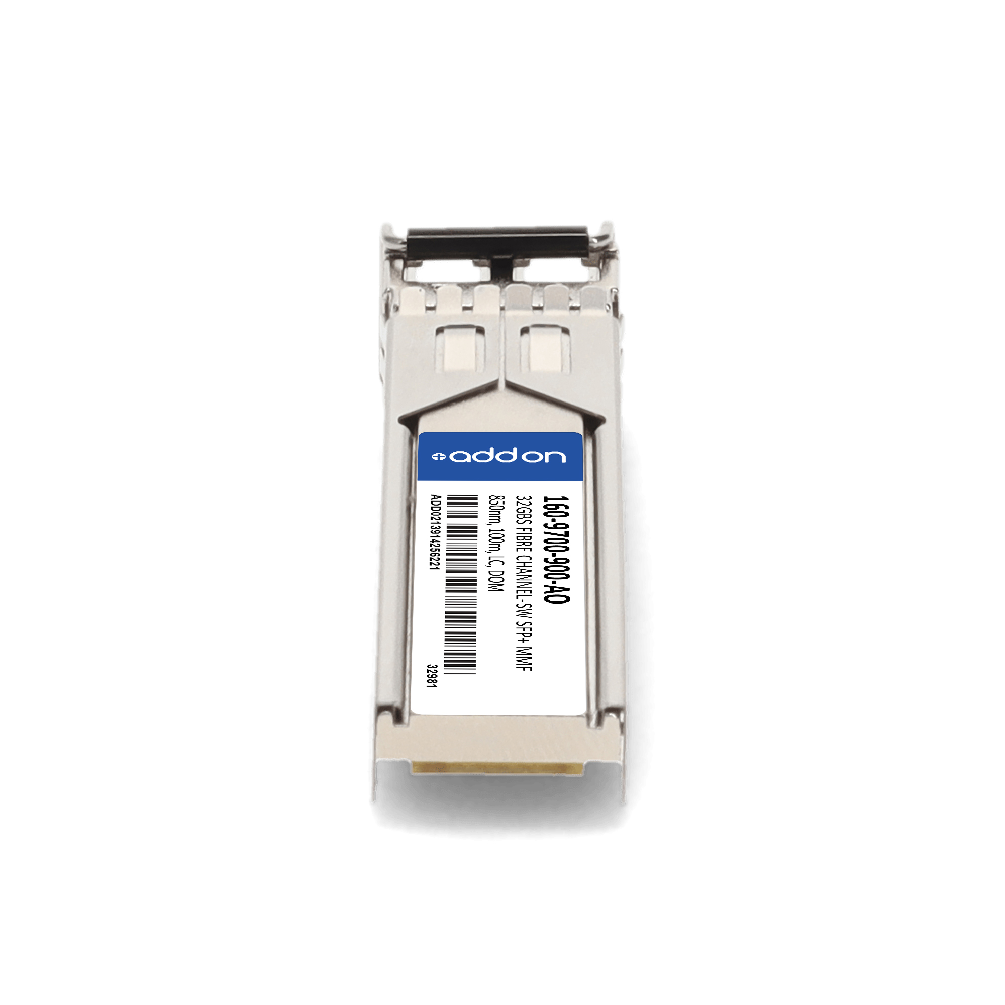 AddOn Networks Ciena 160-9700-900 Compatible TAA 32GBase-SW Fibre Channel SFP+ Transceiver (MMF, 850nm, 100m, LC, DOM). SFP transceiver type: Fiber optic, Maximum data transfer rate: 32000 Mbit/s, Interface type: SFP+. Form factor: SFP+, Brand compatibility: Ciena, Compatibility: 160-9700-900. Compliance certificates: Trade Agreements Act (TAA). Quantity per pack: 1 pc(s). Package width: 70 mm, Package depth: 121 mm, Package height: 30 mm