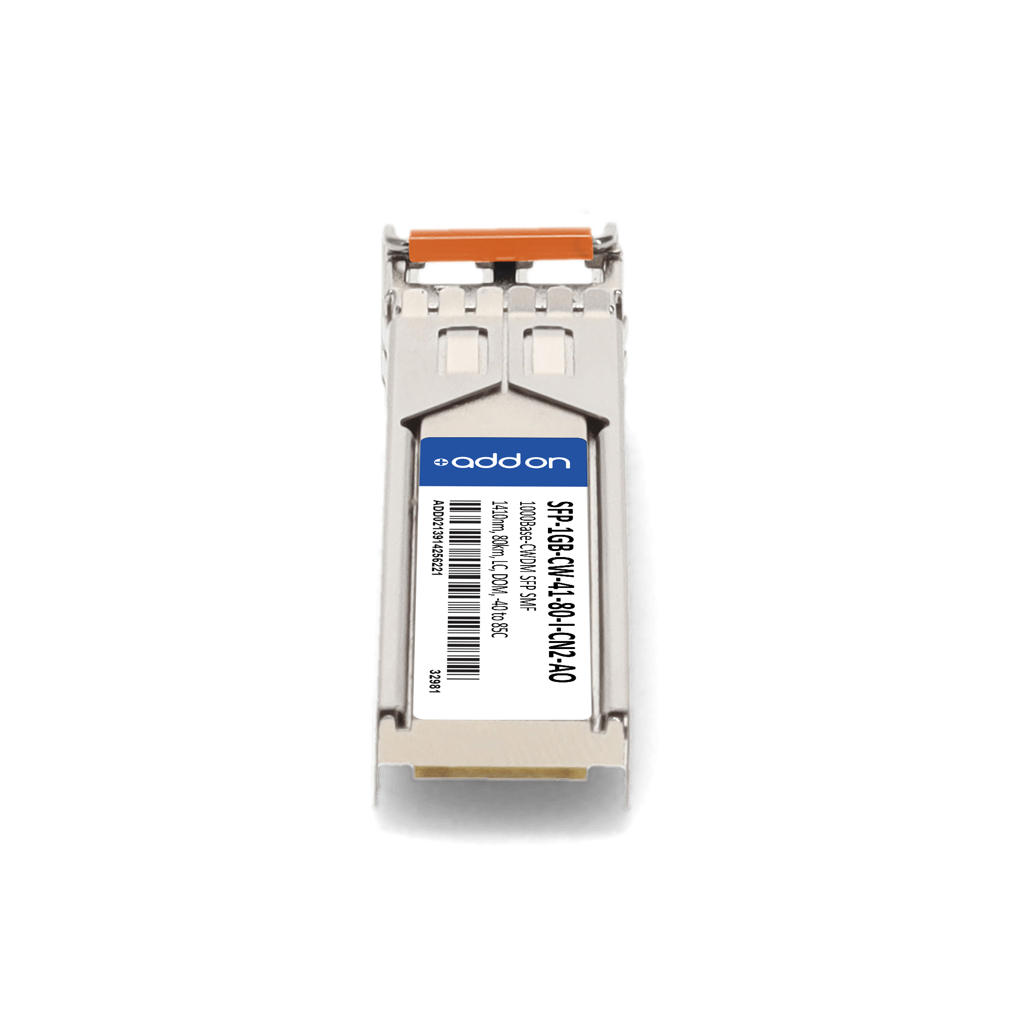 AddOn Networks Ciena Compatible TAA 1000Base-CWDM SFP Transceiver (SMF, 1410nm, 80km, LC, -40 to 85C). SFP transceiver type: Fiber optic, Maximum data transfer rate: 1000 Mbit/s, Interface type: SFP. Product colour: Silver, Form factor: SFP, Brand compatibility: Ciena. Compliance certificates: Trade Agreements Act (TAA). Quantity per pack: 1 pc(s). Package width: 70 mm, Package depth: 121 mm, Package height: 30 mm