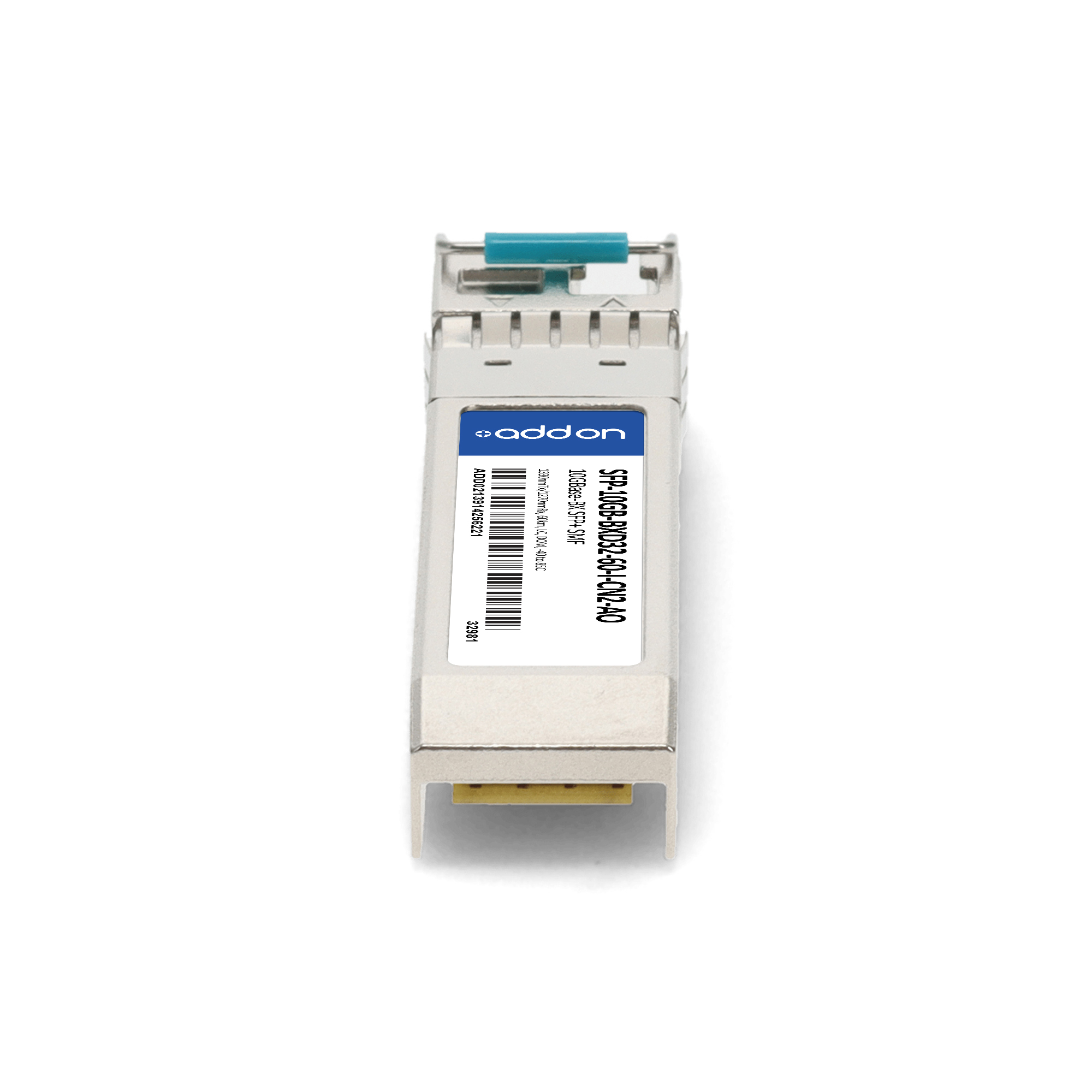 AddOn Networks Ciena Compatible TAA 10GBase-BX SFP+ Transceiver (SMF, 1330nmTx/1270nmRx, 60km, LC, DOM, -40 to 85C). SFP transceiver type: Fiber optic, Maximum data transfer rate: 10000 Mbit/s, Interface type: SFP+. Product colour: Silver, Form factor: SFP+, Brand compatibility: Ciena. Compliance certificates: Trade Agreements Act (TAA). Quantity per pack: 1 pc(s). Package width: 70 mm, Package depth: 121 mm, Package height: 30 mm