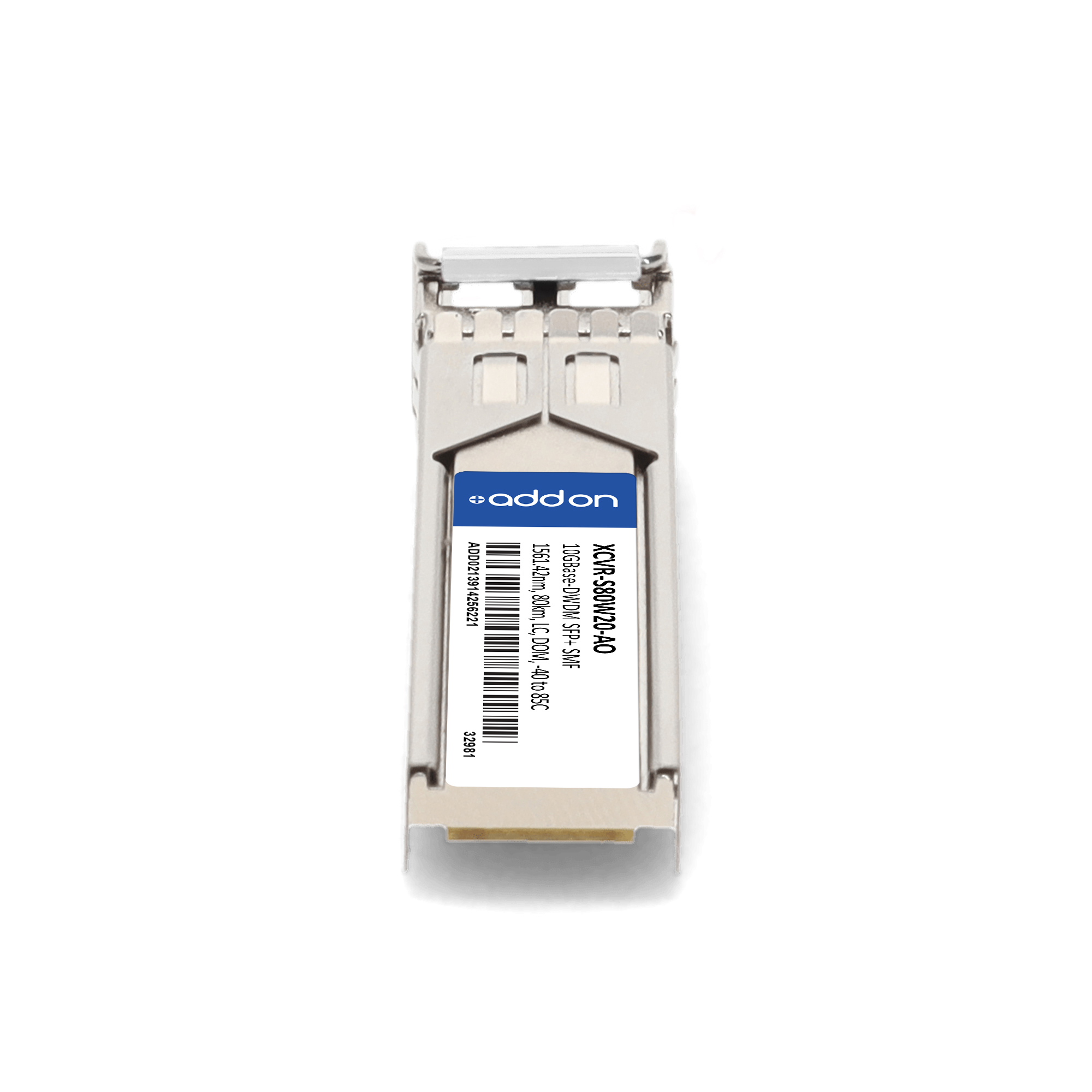 AddOn Networks Ciena Compatible TAA 10GBase-DWDM SFP+ Transceiver C-Band 100GHz (SMF, 1561.42nm, 80km, LC, DOM, -40 to 85C). SFP transceiver type: Fiber optic, Maximum data transfer rate: 10000 Mbit/s, Interface type: SFP+. Product colour: Silver, Form factor: SFP+, Brand compatibility: Ciena. Compliance certificates: Trade Agreements Act (TAA). Quantity per pack: 1 pc(s). Package width: 70 mm, Package depth: 121 mm, Package height: 30 mm