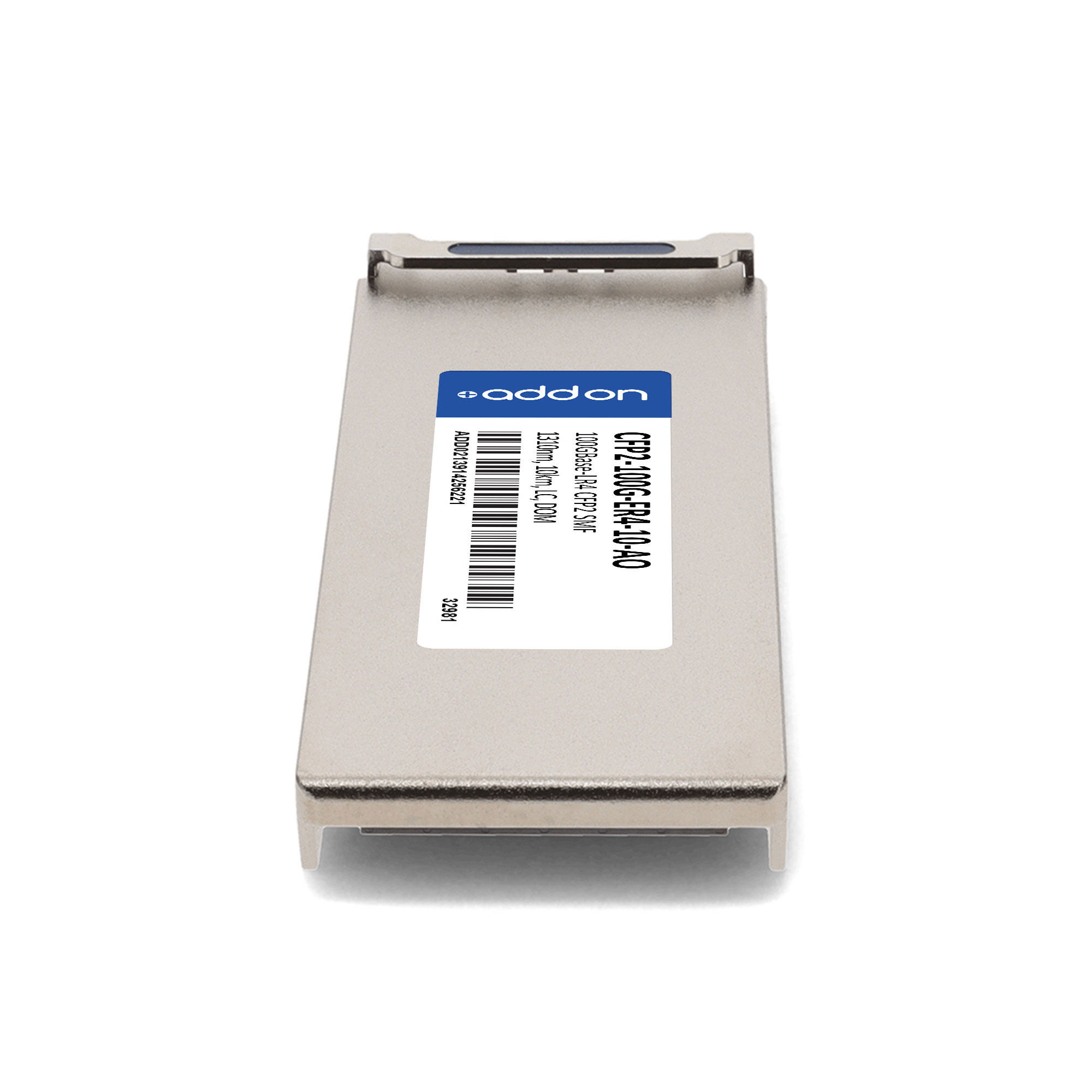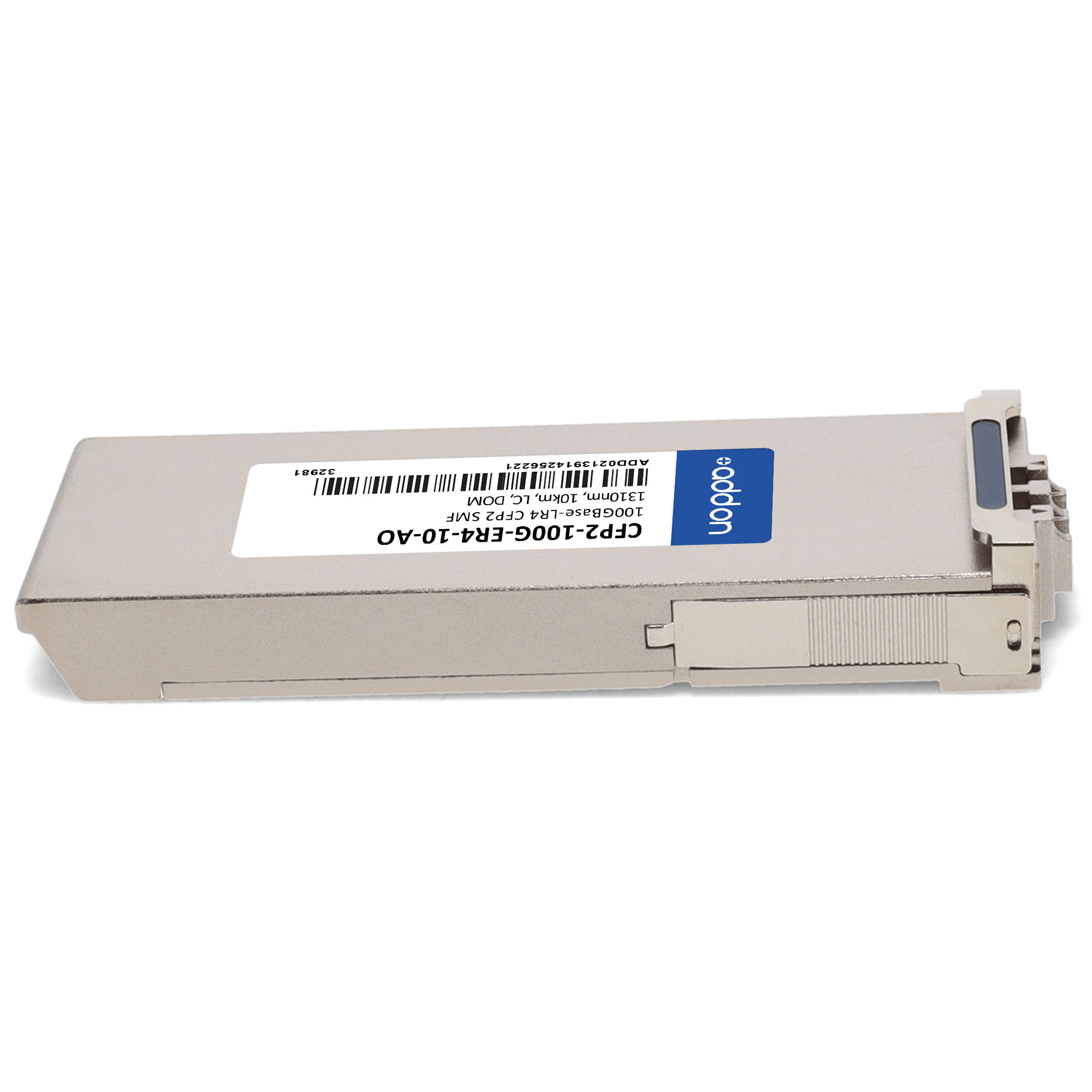 AddOn Networks Cisco CFP2-100G-ER4-10 Compatible TAA 100GBase-LR4 CFP2 Transceiver (SMF, 1310nm, 10km, LC, DOM). SFP transceiver type: Fiber optic, Maximum data transfer rate: 100000 Mbit/s, Interface type: CFP2. Form factor: CFP2, Brand compatibility: Cisco, Compatibility: CFP2-100G-ER4-10. Compliance certificates: Trade Agreements Act (TAA). Quantity per pack: 1 pc(s). Package width: 133 mm, Package depth: 32 mm, Package height: 197 mm