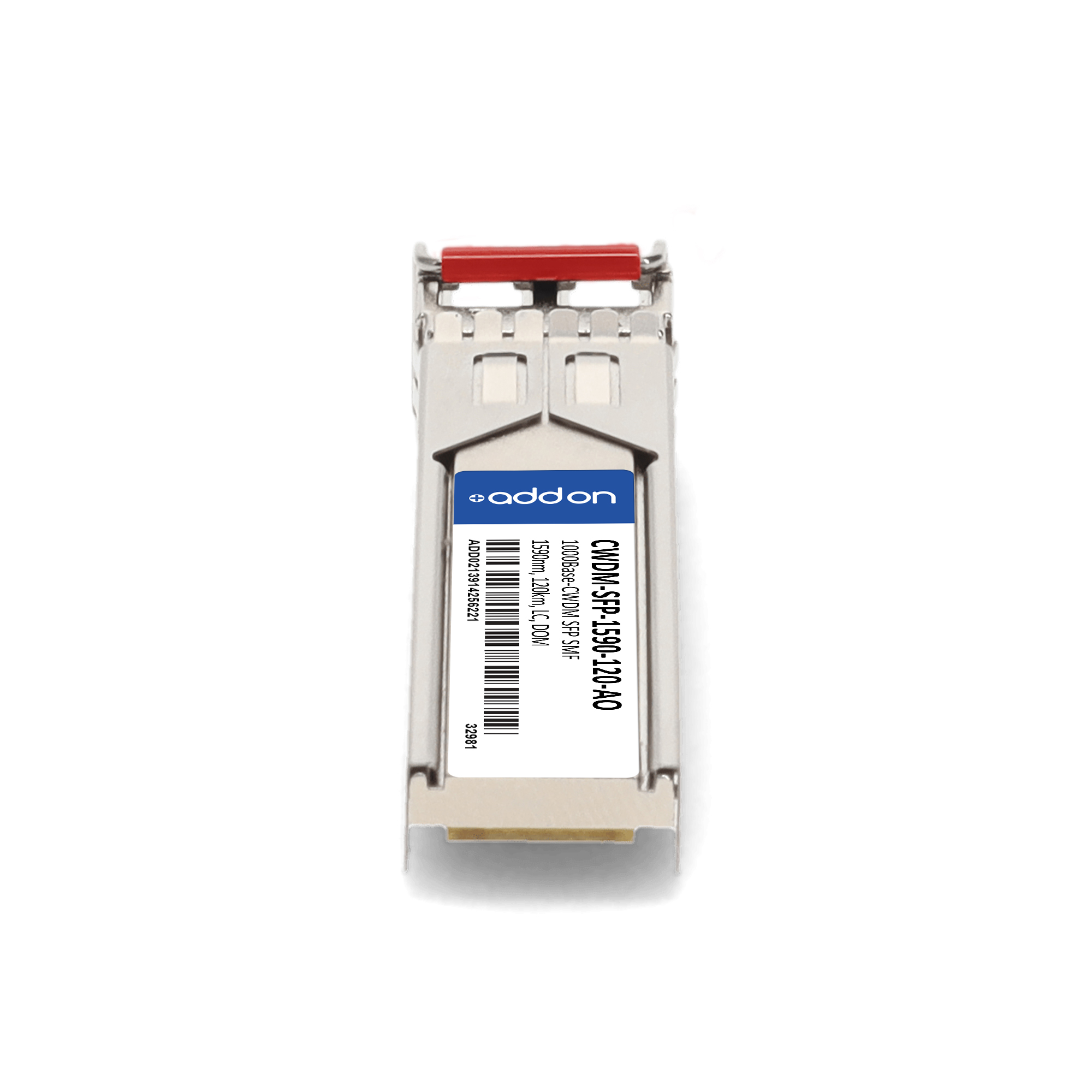 AddOn Networks Cisco Compatible TAA 1000Base-CWDM SFP Transceiver (SMF, 1590nm, 120km, LC, DOM). SFP transceiver type: Fiber optic, Maximum data transfer rate: 1000 Mbit/s, Interface type: SFP. Form factor: SFP, Brand compatibility: Cisco. Compliance certificates: Trade Agreements Act (TAA). Quantity per pack: 1 pc(s). Package width: 70 mm, Package depth: 121 mm, Package height: 30 mm