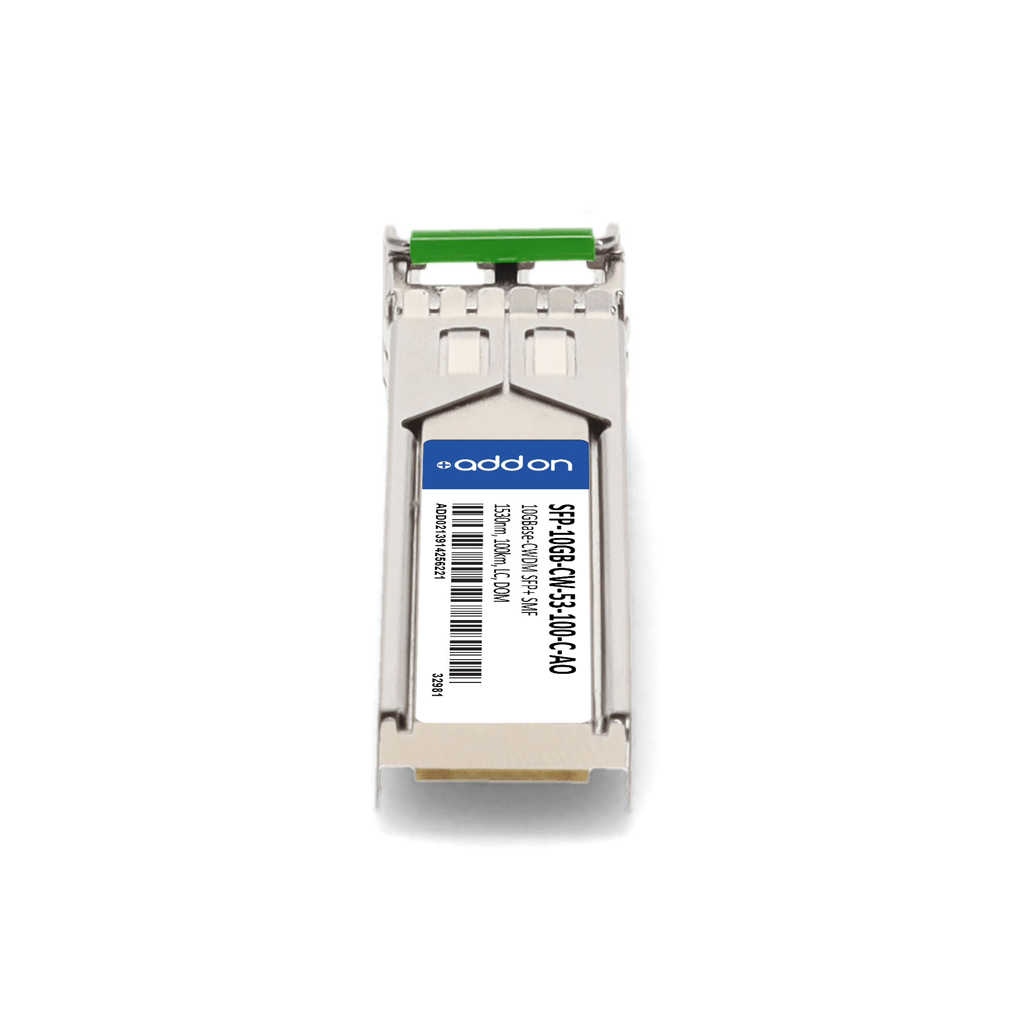 AddOn Networks Cisco Compatible TAA 10GBase-CWDM SFP+ Transceiver (SMF, 1530nm, 100km, LC, DOM). SFP transceiver type: Fiber optic, Maximum data transfer rate: 10000 Mbit/s, Interface type: SFP+. Form factor: SFP+, Brand compatibility: Cisco. Compliance certificates: Trade Agreements Act (TAA). Quantity per pack: 1 pc(s). Package width: 70 mm, Package depth: 121 mm, Package height: 30 mm