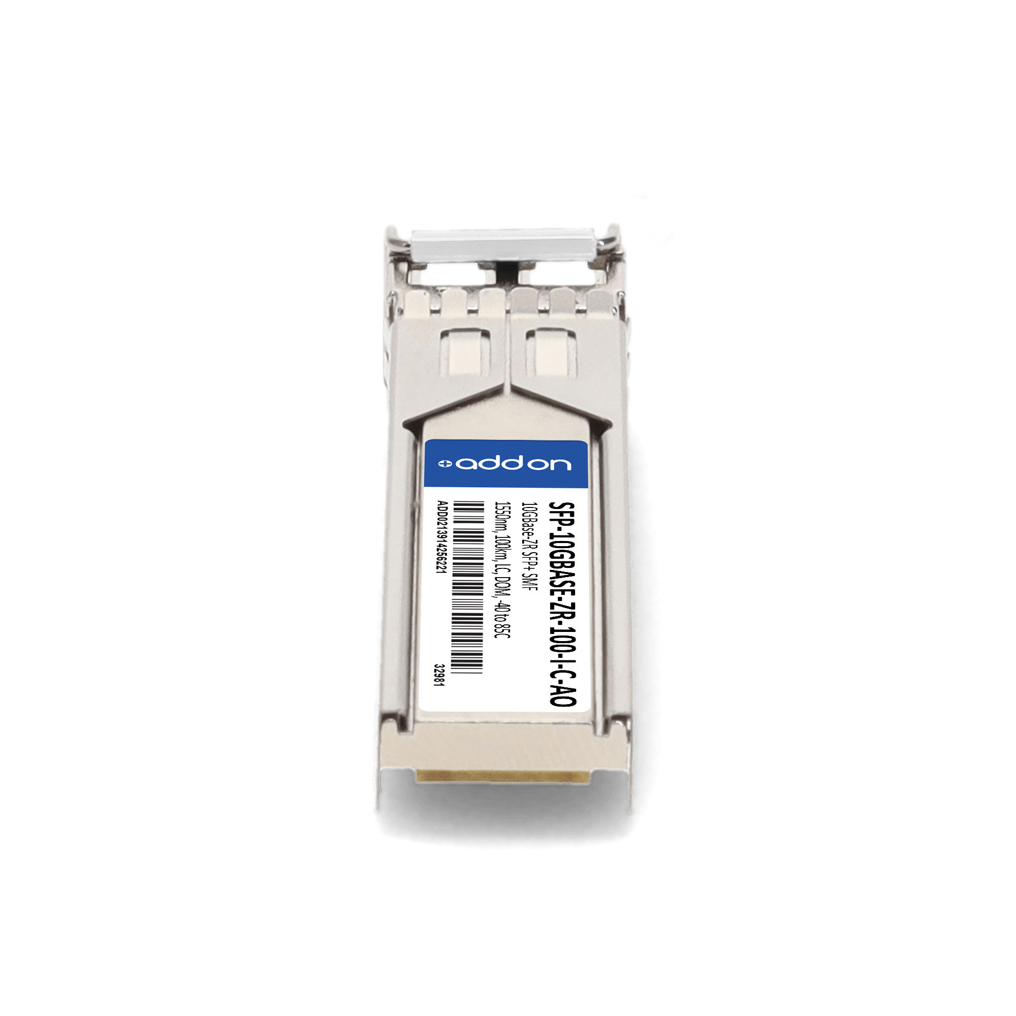 AddOn Networks Cisco Compatible TAA 10GBase-ZR SFP+ Transceiver (SMF, 1550nm, 100km, LC, DOM, -40 to 85C). SFP transceiver type: Fiber optic, Maximum data transfer rate: 10000 Mbit/s, Interface type: SFP+. Form factor: SFP+, Brand compatibility: Cisco. Compliance certificates: Trade Agreements Act (TAA). Quantity per pack: 1 pc(s). Package width: 70 mm, Package depth: 121 mm, Package height: 30 mm