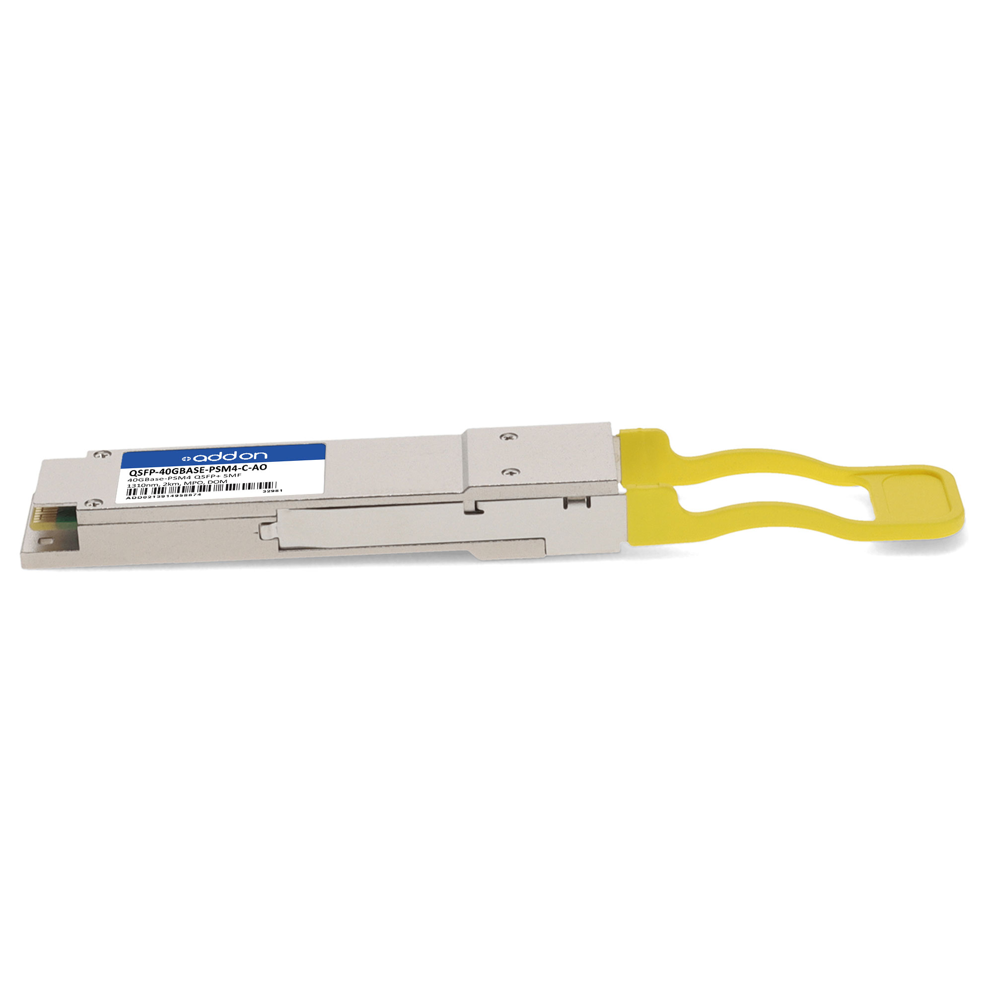 AddOn Networks Cisco QSFP-40GBASE-PSM4 Compatible 40GBase-PSM4 QSFP+ Transceiver (SMF, 1310nm, 2km, MPO, DOM). SFP transceiver type: Fiber optic, Maximum data transfer rate: 40000 Mbit/s, Interface type: QSFP+. Form factor: QSFP+, Brand compatibility: Cisco. Compliance certificates: Trade Agreements Act (TAA). Quantity per pack: 1 pc(s). Package width: 70 mm, Package depth: 121 mm, Package height: 30 mm
