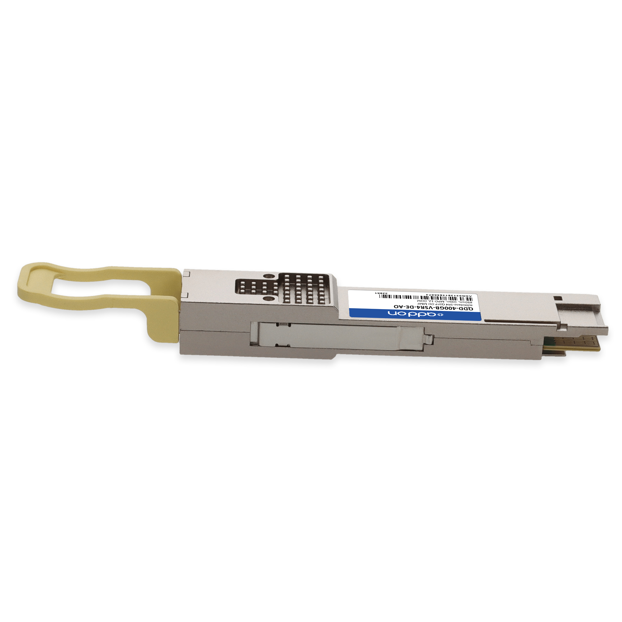 AddOn Networks Dell Compatible TAA 400GBase-SR4 PAM4 112G QSFP-DD Transceiver (MMF, 850nm, 50m, MPO-12, DOM, CMIS 4.0). SFP transceiver type: Fiber optic, Maximum data transfer rate: 400000 Mbit/s, Interface type: QSFP-DD. Form factor: QSFP-DD, Brand compatibility: Dell. Compliance certificates: Trade Agreements Act (TAA). Quantity per pack: 1 pc(s). Package width: 70 mm, Package depth: 121 mm, Package height: 30 mm