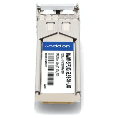 AddOn Networks DWDM-SFP10G-58.98-40-I-AO. SFP transceiver type: Fiber optic, Maximum data transfer rate: 1250 Mbit/s, Interface type: SFP+. Product colour: Silver. Quantity per pack: 1 pc(s). Shipping (inner) case length: 12.1 cm, Shipping (inner) case width: 6.99 cm, Shipping (inner) case height: 3.05 cm