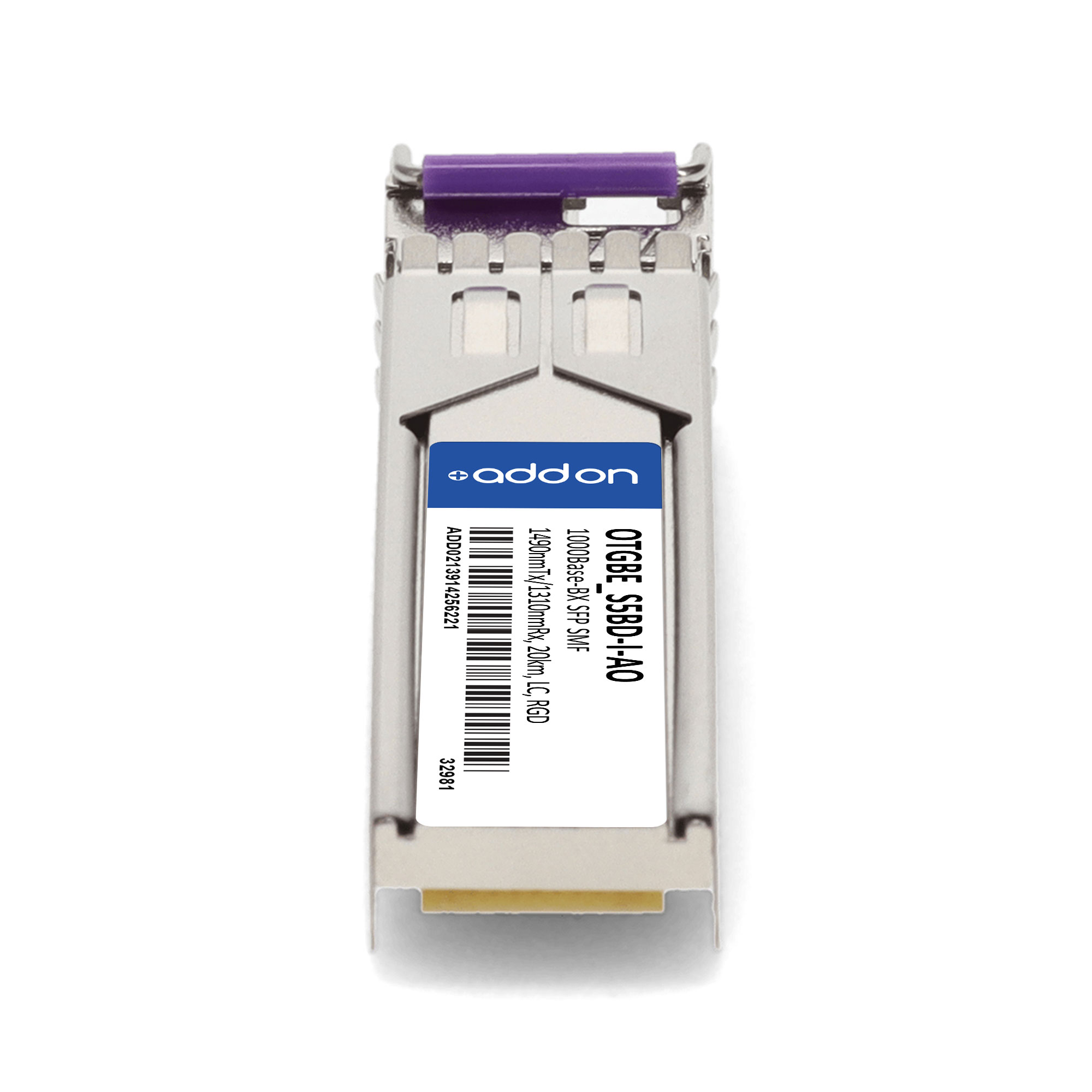 AddOn Networks ECI OTGBE_S5BD-I Compatible TAA 1000Base-BX SFP Transceiver (SMF, 1490nmTx/1310nmRx, 20km, LC, DOM, -40 to 85C). SFP transceiver type: Fiber optic, Maximum data transfer rate: 1000 Mbit/s, Interface type: SFP. Form factor: SFP, Brand compatibility: ECI Telecom, Compatibility: OTGBE_S5BD-I. Compliance certificates: Trade Agreements Act (TAA). Quantity per pack: 1 pc(s). Package width: 70 mm, Package depth: 121 mm, Package height: 30 mm