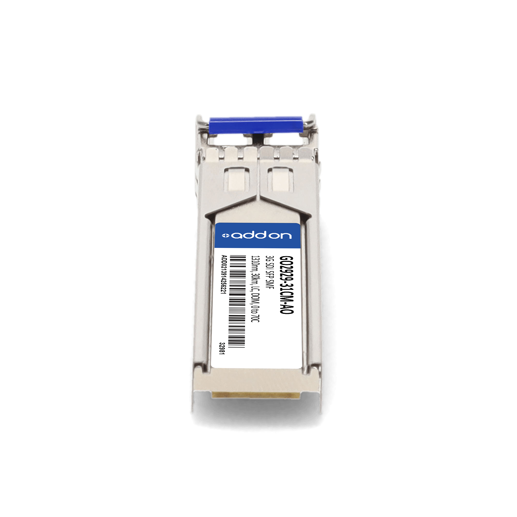 AddOn Networks Embrionix GO2929-31CM Compatible TAA 3G SDI SFP Audio/Video Transceiver (SMF, 1310nm, 30km, LC, DOM, 0 to 70C). SFP transceiver type: Fiber optic, Maximum data transfer rate: 3000 Mbit/s, Interface type: SFP. Product colour: Silver, Form factor: SFP, Compatibility: GO2929-31CM. Compliance certificates: Trade Agreements Act (TAA). Quantity per pack: 1 pc(s). Package width: 70 mm, Package depth: 121 mm, Package height: 30 mm