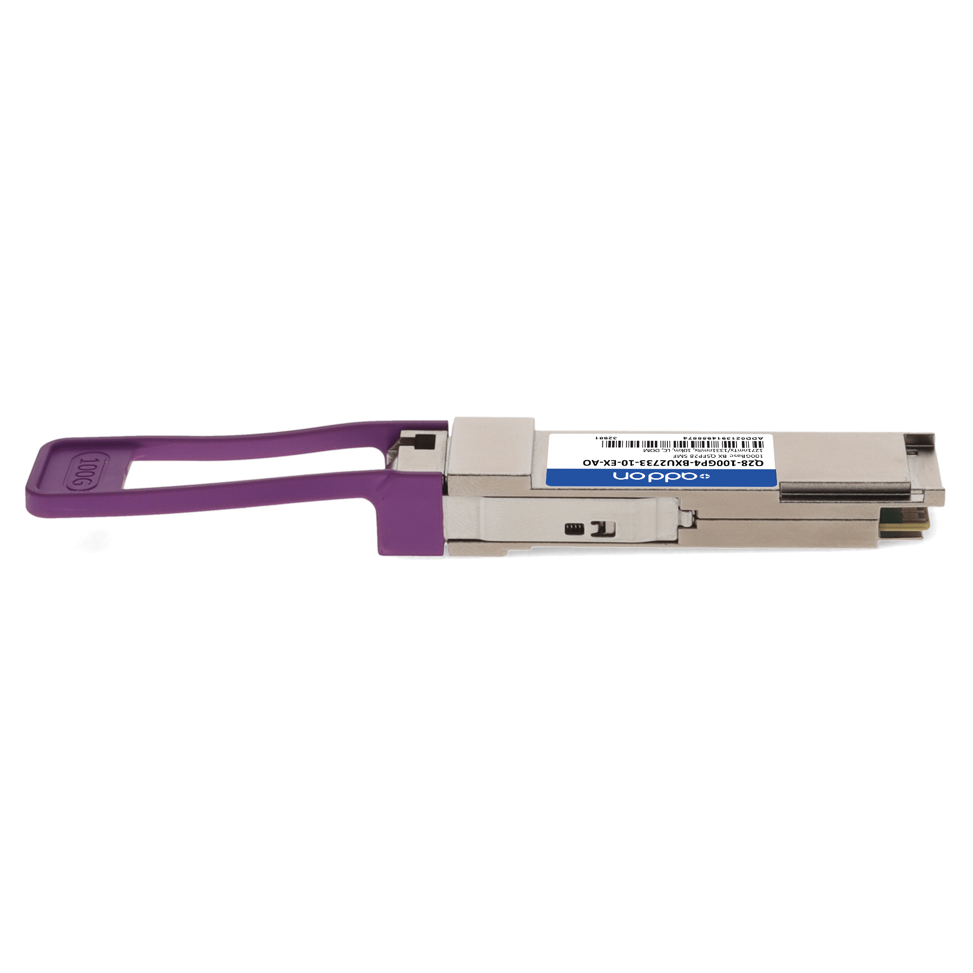 AddOn Networks Extreme Networks Compatible 100GBase-BX QSFP28 Single Lambda Transceiver (SMF, 1271nmTx/1331nmRx, 10km, LC, DOM, with FEC). SFP transceiver type: Fiber optic, Maximum data transfer rate: 100000 Mbit/s, Interface type: QSFP28. Product colour: Silver, Form factor: QSFP28, Brand compatibility: Extreme Networks. Compliance certificates: Trade Agreements Act (TAA). Quantity per pack: 1 pc(s). Package width: 70 mm, Package depth: 121 mm, Package height: 30 mm