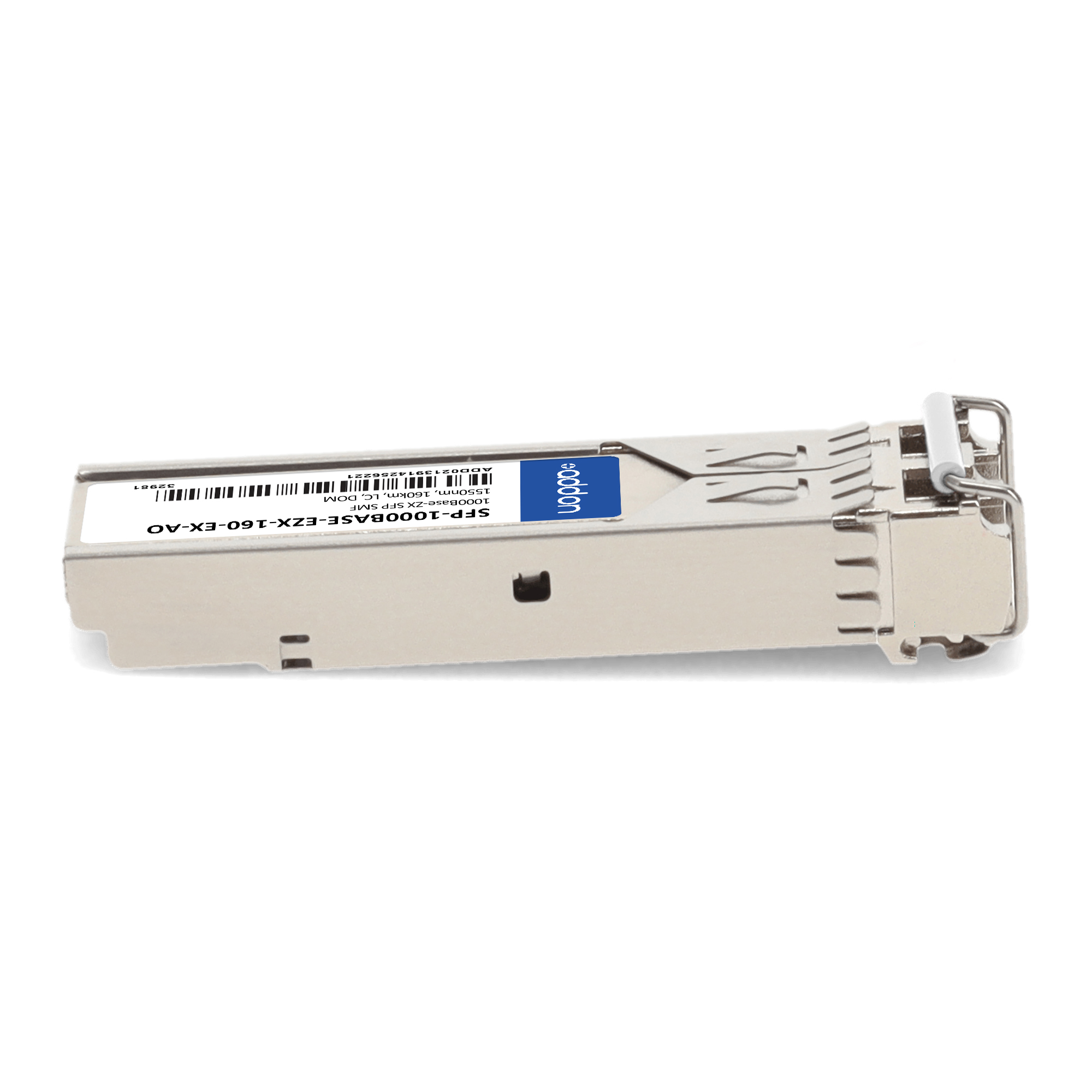 AddOn Networks Extreme Networks Compatible TAA 1000Base-EZX SFP Transceiver (SMF, 1550nm, 160km, LC, DOM). SFP transceiver type: Fiber optic, Maximum data transfer rate: 1000 Mbit/s, Interface type: SFP. Form factor: SFP, Brand compatibility: Extreme Networks. Compliance certificates: Trade Agreements Act (TAA). Quantity per pack: 1 pc(s). Package width: 70 mm, Package depth: 121 mm, Package height: 30 mm
