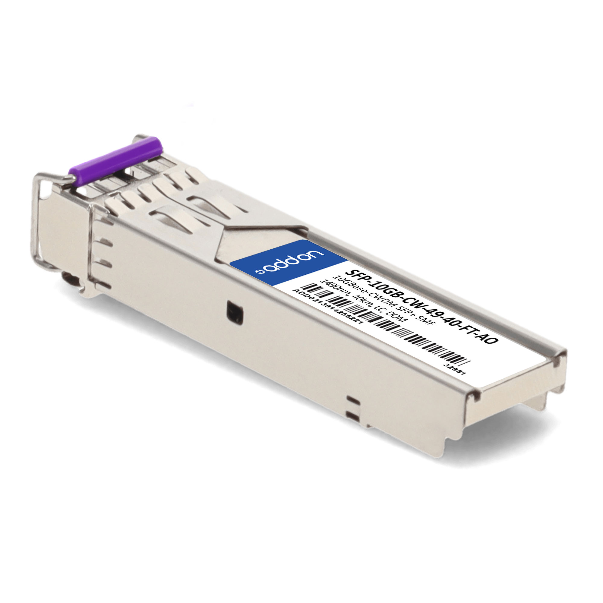 AddOn Networks Fortinet Compatible TAA 10GBase-CWDM SFP+ Transceiver (SMF, 1490nm, 40km, LC, DOM). SFP transceiver type: Fiber optic, Maximum data transfer rate: 10000 Mbit/s, Interface type: SFP+. Form factor: SFP+, Brand compatibility: Fortinet. Compliance certificates: Trade Agreements Act (TAA). Quantity per pack: 1 pc(s). Package width: 70 mm, Package depth: 121 mm, Package height: 30 mm