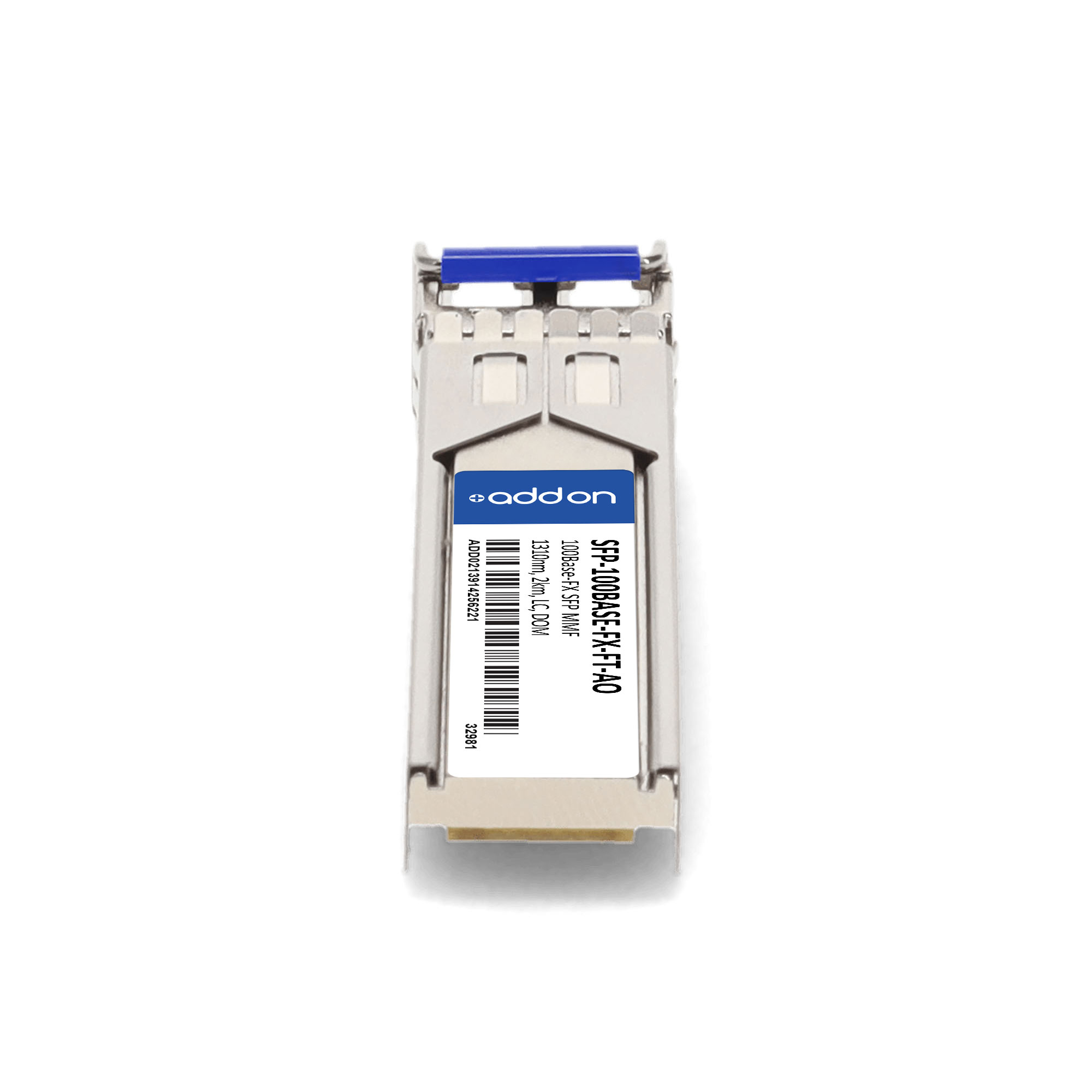 AddOn Networks Fortinet Compatible TAA Compliant 100Base-FX SFP Transceiver (MMF, 1310nm, 2km, LC). SFP transceiver type: Fiber optic, Maximum data transfer rate: 100 Mbit/s, Interface type: SFP. Form factor: SFP, Brand compatibility: Fortinet. Compliance certificates: Trade Agreements Act (TAA). Quantity per pack: 1 pc(s). Package width: 70 mm, Package depth: 121 mm, Package height: 30 mm