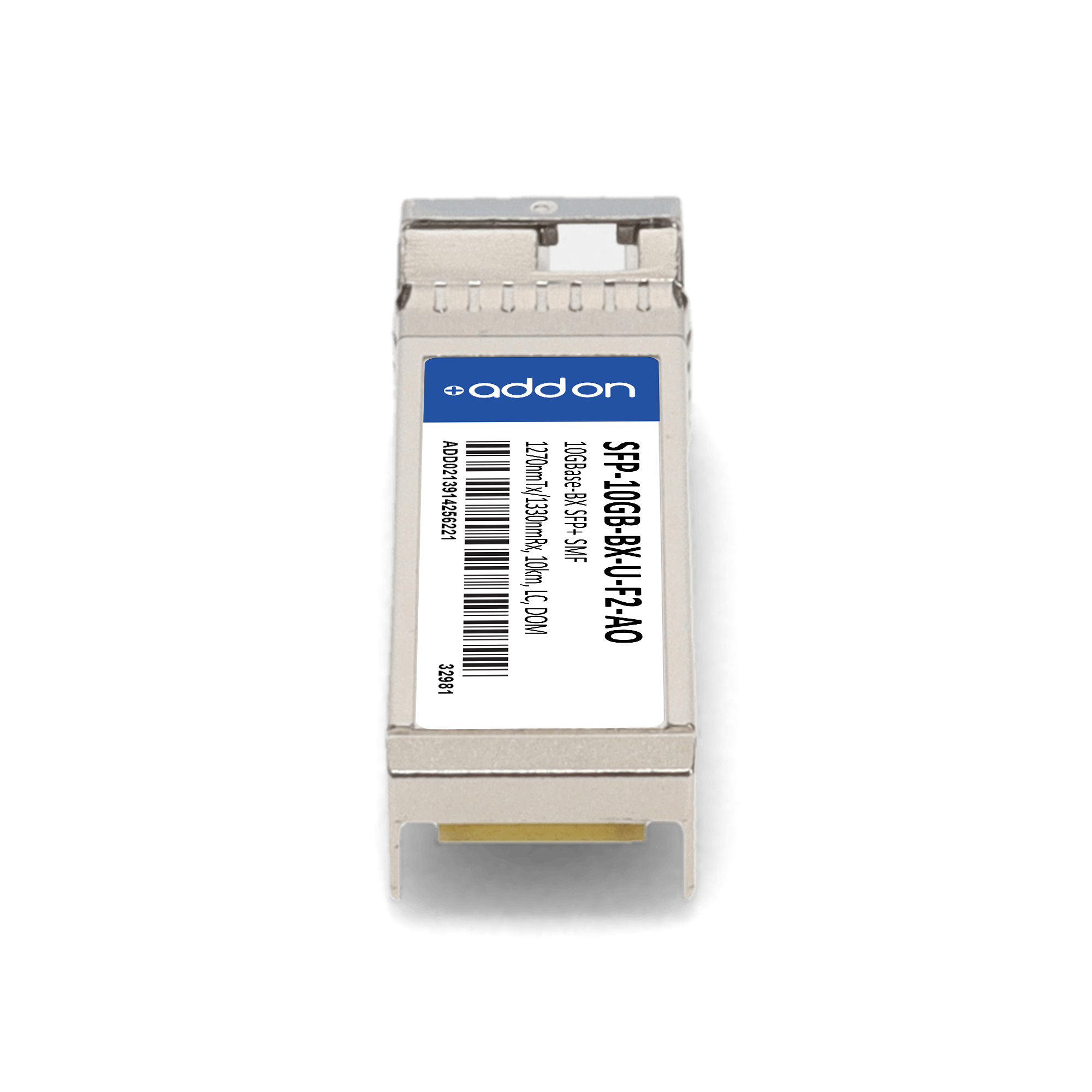 AddOn Networks Fujitsu Compatible TAA 10GBase-BX SFP+ Transceiver (SMF, 1270nmTx/1330nmRx, 10km, LC, DOM). SFP transceiver type: Fiber optic, Maximum data transfer rate: 10000 Mbit/s, Interface type: SFP+. Form factor: SFP+, Brand compatibility: Fujitsu. Compliance certificates: Trade Agreements Act (TAA). Quantity per pack: 1 pc(s). Package width: 70 mm, Package depth: 121 mm, Package height: 30 mm