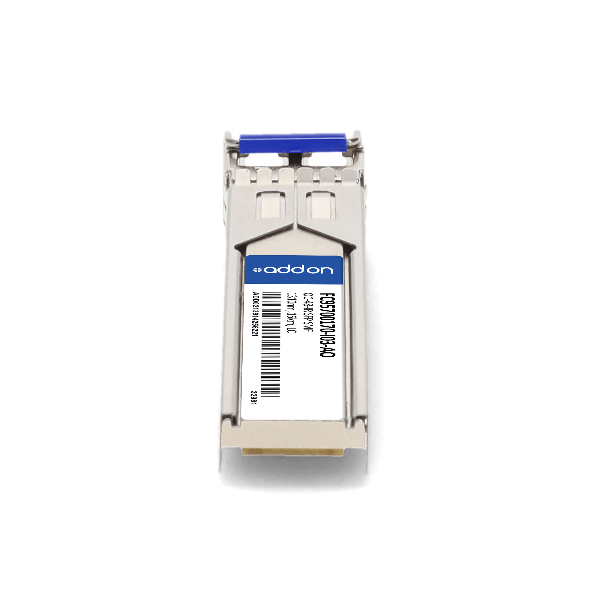 AddOn Networks Fujitsu FC95700170-I03 Compatible TAA OC-48-IR SFP Transceiver Multi-Rate (SMF, 1310nm, 15km, LC, DOM). SFP transceiver type: Fiber optic, Maximum data transfer rate: 2488 Mbit/s, Interface type: SFP. Form factor: SFP, Brand compatibility: Fujitsu, Compatibility: FC95700170-I03. Compliance certificates: Trade Agreements Act (TAA). Quantity per pack: 1 pc(s). Package width: 70 mm, Package depth: 121 mm, Package height: 30 mm