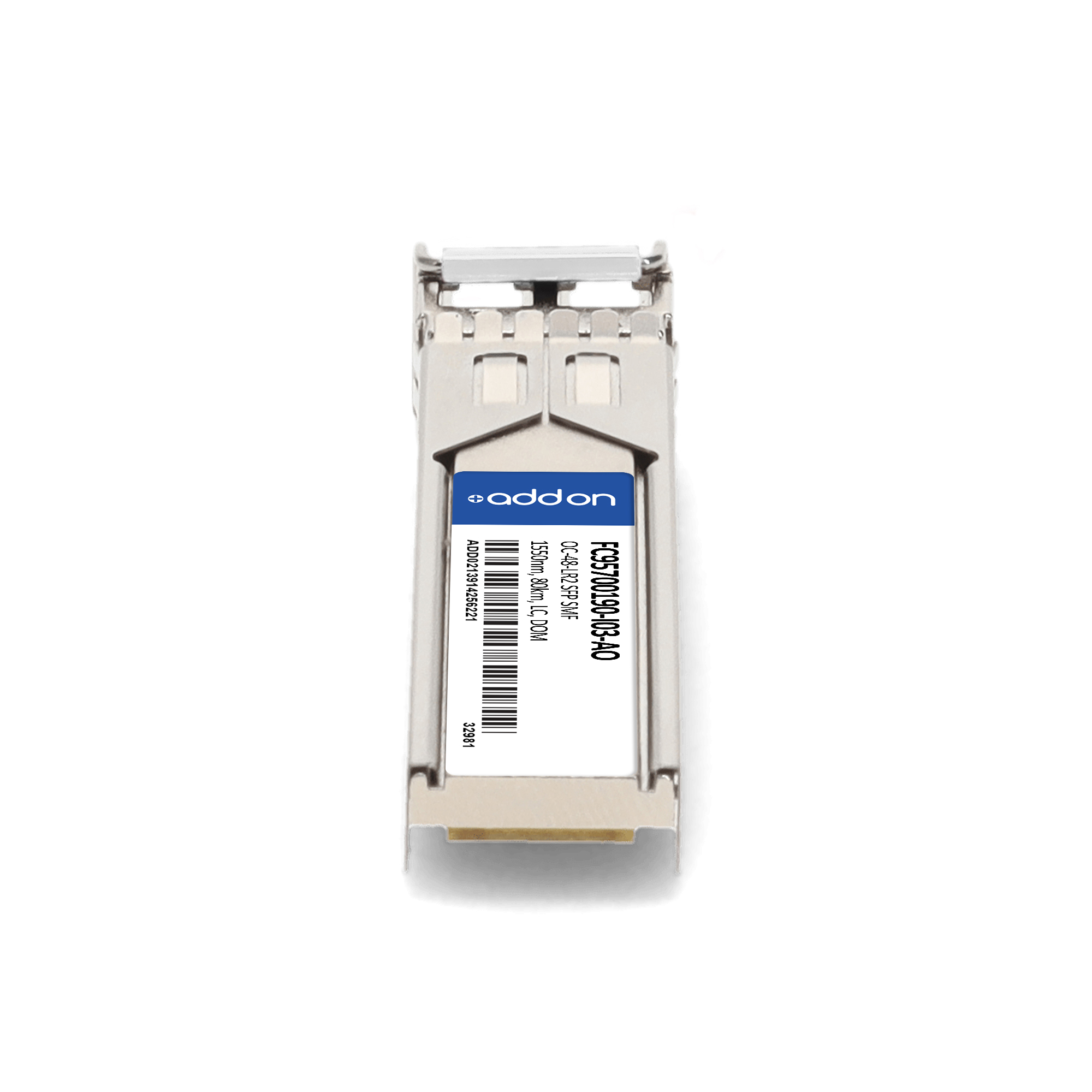 AddOn Networks Fujitsu FC95700190-I03 Compatible TAA OC-48-LR2 SFP Transceiver Multi-Rate (SMF, 1550nm, 80km, LC). SFP transceiver type: Fiber optic, Maximum data transfer rate: 2488 Mbit/s, Interface type: SFP. Form factor: SFP, Brand compatibility: Fujitsu, Compatibility: FC95700190-I03. Compliance certificates: Trade Agreements Act (TAA). Quantity per pack: 1 pc(s). Package width: 70 mm, Package depth: 121 mm, Package height: 30 mm