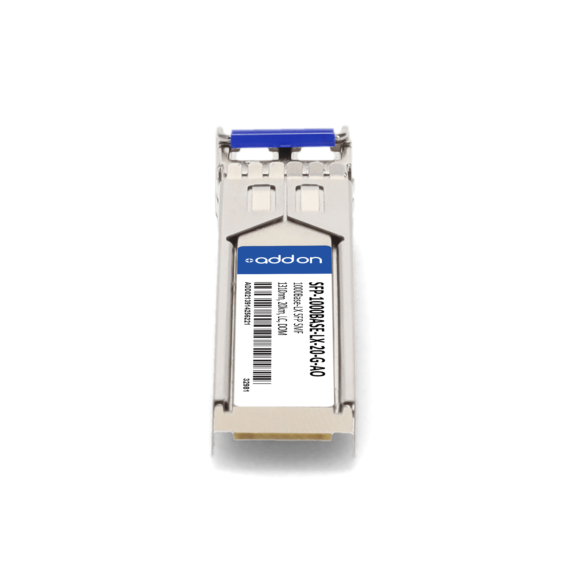 AddOn Networks Gigamon Systems Compatible TAA 1000Base-LX SFP Transceiver (SMF, 1310nm, 20km, LC). SFP transceiver type: Fiber optic, Maximum data transfer rate: 1000 Mbit/s, Interface type: SFP. Product colour: Silver, Form factor: SFP, Brand compatibility: Gigamon Systems. Compliance certificates: Trade Agreements Act (TAA). Quantity per pack: 1 pc(s). Package width: 70 mm, Package depth: 121 mm, Package height: 30 mm