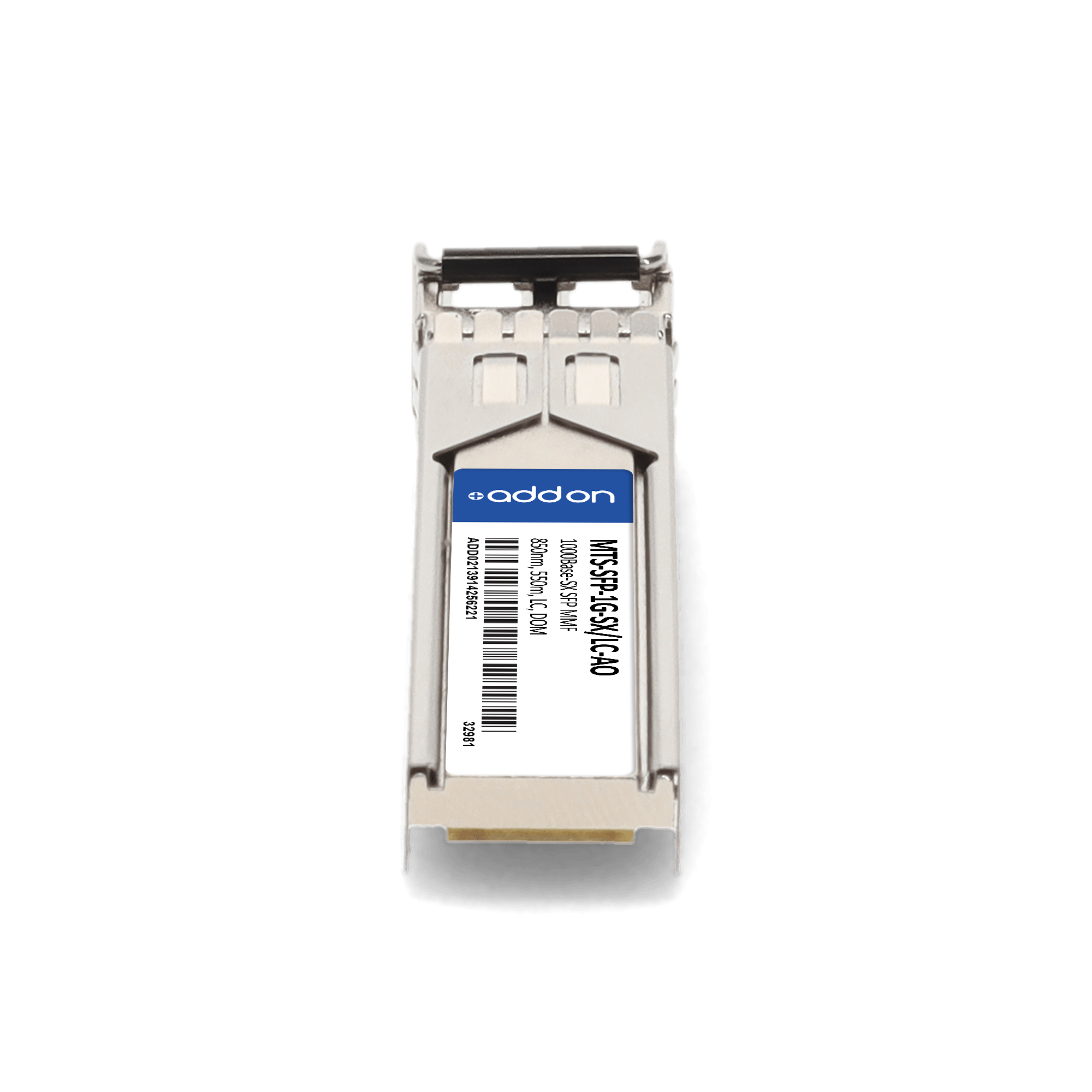 AddOn Networks Hirschmann MTS-SFP-1G-SX/LC Compatible TAA 1000Base-SX SFP Transceiver (MMF, 850nm, 550m, LC, DOM). SFP transceiver type: Fiber optic, Maximum data transfer rate: 1000 Mbit/s, Interface type: SFP. Form factor: SFP, Brand compatibility: Hirschmann, Compatibility: MTS-SFP-1G-SX/LC. Compliance certificates: Trade Agreements Act (TAA). Quantity per pack: 1 pc(s). Package width: 70 mm, Package depth: 121 mm, Package height: 30 mm