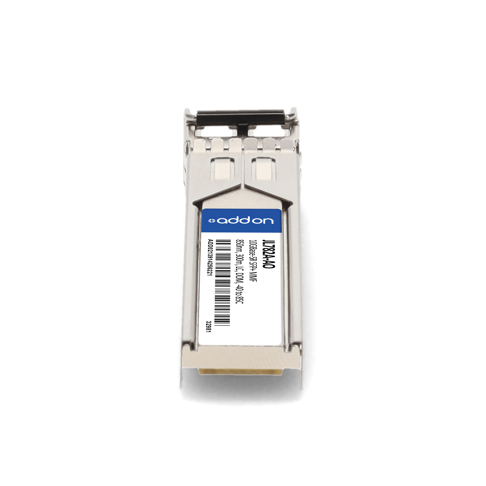 AddOn Networks HP JL782A Compatible TAA 10GBase-SR SFP+ Transceiver (MMF, 850nm, 300m, LC, DOM, -40 to 85C). SFP transceiver type: Fiber optic, Maximum data transfer rate: 10000 Mbit/s, Interface type: SFP+. Form factor: SFP+, Brand compatibility: HP. Compliance certificates: Trade Agreements Act (TAA). Quantity per pack: 1 pc(s). Package width: 70 mm, Package depth: 121 mm, Package height: 30 mm