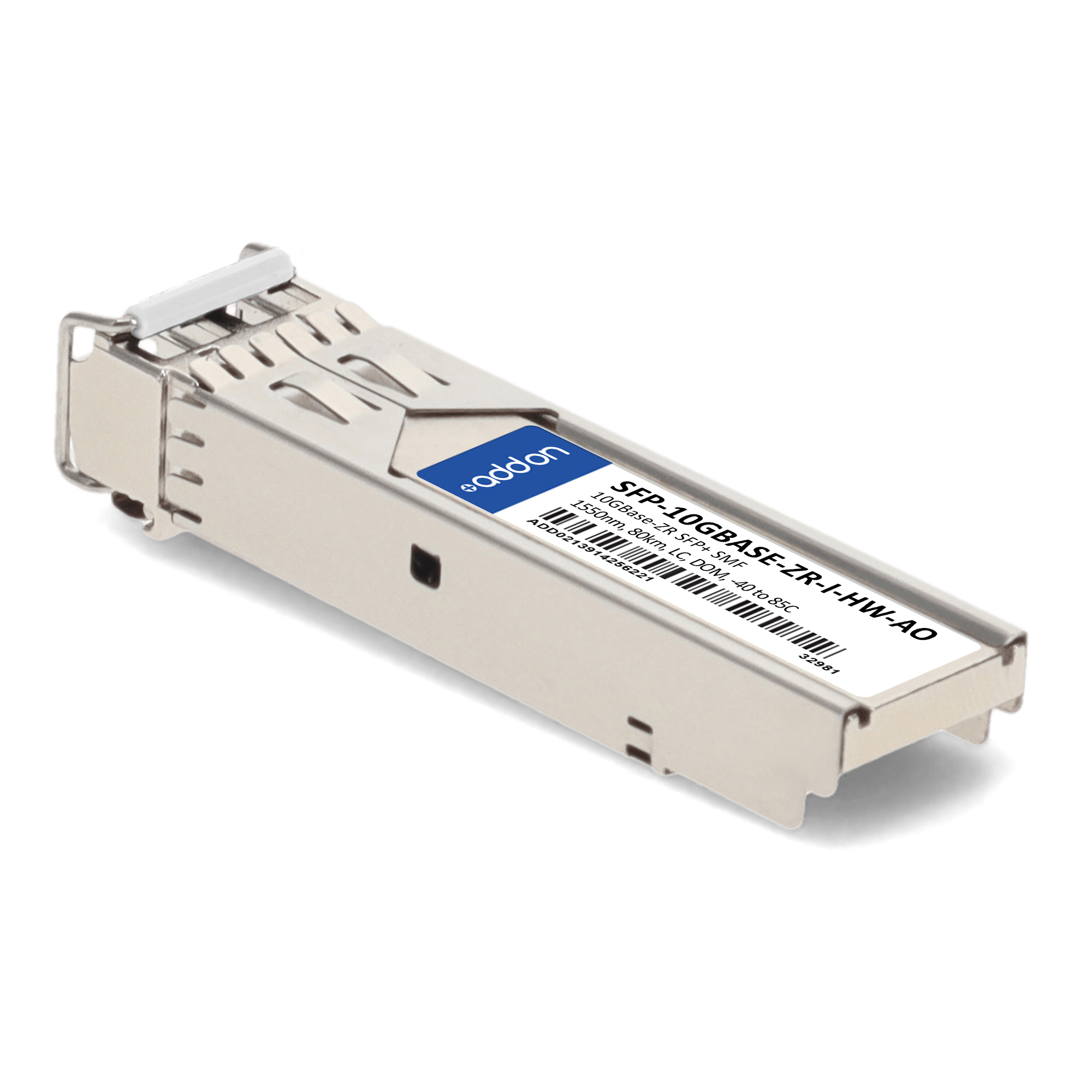 AddOn Networks Huawei Compatible TAA 10GBase-ZR SFP+ Transceiver (SMF, 1550nm, 80km, LC, DOM, -40 to 85C). SFP transceiver type: Fiber optic, Maximum data transfer rate: 10000 Mbit/s, Interface type: SFP+. Form factor: SFP+, Brand compatibility: Huawei. Compliance certificates: Trade Agreements Act (TAA). Quantity per pack: 1 pc(s). Package width: 70 mm, Package depth: 121 mm, Package height: 30 mm