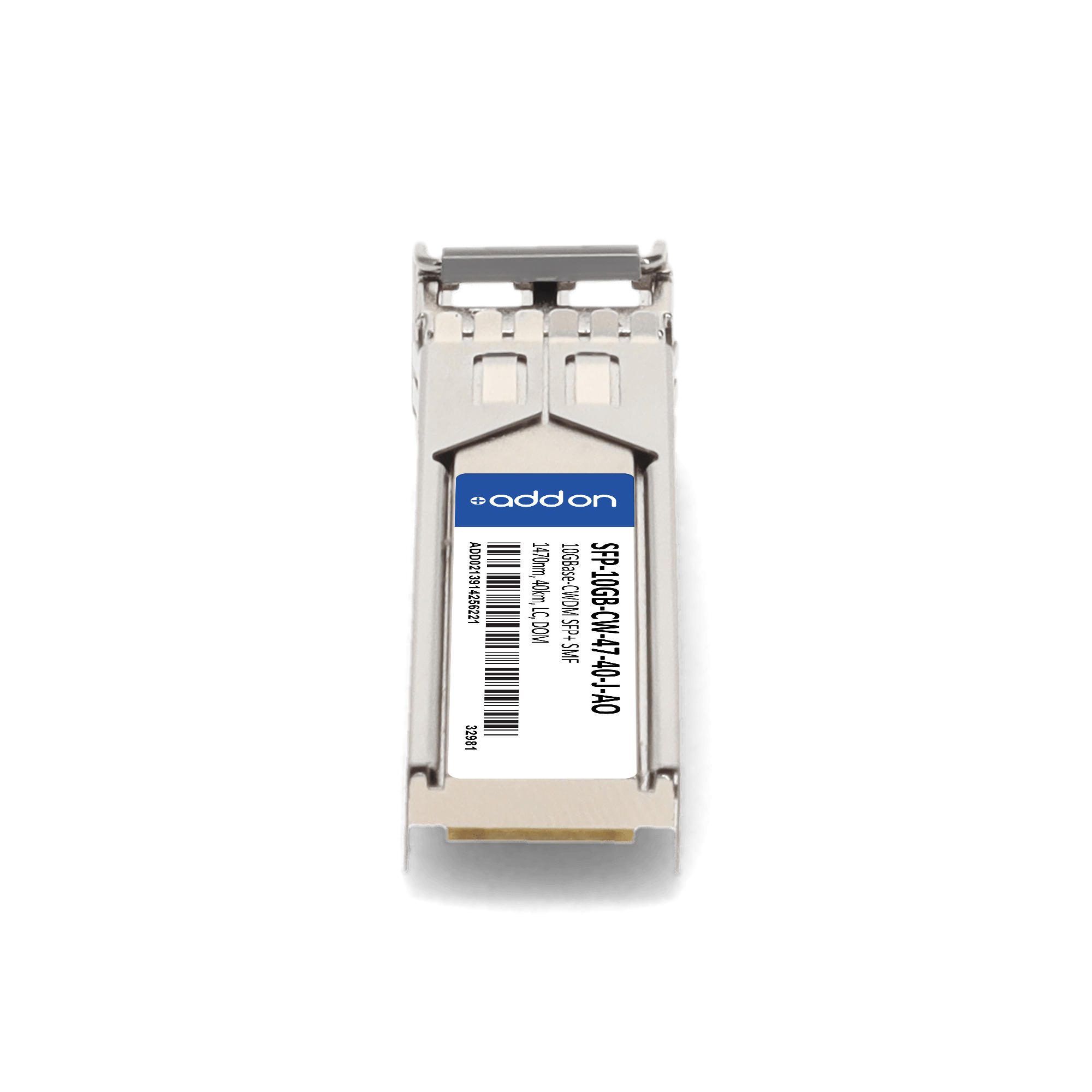 AddOn Networks Juniper Networks Compatible TAA 10GBase-CWDM SFP+ Transceiver (SMF, 1470nm, 40km, LC, DOM). SFP transceiver type: Fiber optic, Maximum data transfer rate: 10000 Mbit/s, Interface type: SFP+. Form factor: SFP+, Brand compatibility: Juniper. Compliance certificates: Trade Agreements Act (TAA). Quantity per pack: 1 pc(s). Package width: 70 mm, Package depth: 121 mm, Package height: 30 mm