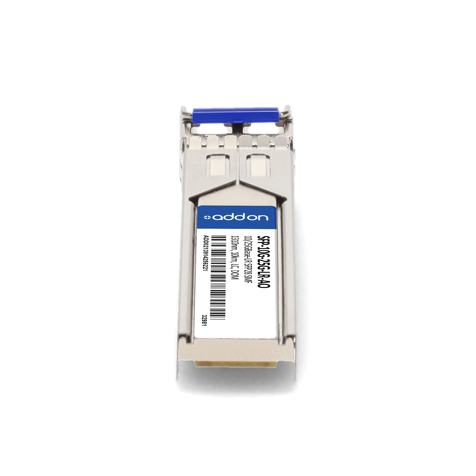 AddOn Networks Juniper Networks SFP-10G-25G-LR Compatible TAA 25GBase-LR SFP28 Transceiver Dual Rate 10/25G Capable (SMF, 1310nm, 10km, LC, DOM). SFP transceiver type: Fiber optic, Maximum data transfer rate: 25000 Mbit/s, Interface type: SFP28. Form factor: SFP28, Brand compatibility: Juniper, Compatibility: SFP-10G-25G-LR. Compliance certificates: Trade Agreements Act (TAA). Quantity per pack: 1 pc(s). Package width: 70 mm, Package depth: 121 mm, Package height: 30 mm