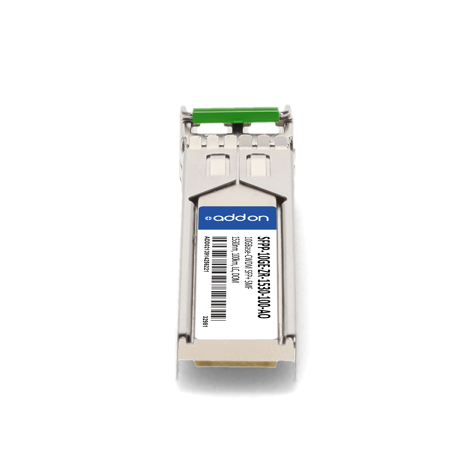 AddOn Networks Juniper Networks SFPP-10GE-ZR Compatible TAA 10GBase-CWDM SFP+ Transceiver (SMF, 1530nm, 100km, LC). SFP transceiver type: Fiber optic, Maximum data transfer rate: 10000 Mbit/s, Interface type: SFP+. Product colour: Silver, Form factor: SFP+, Brand compatibility: Juniper. Compliance certificates: Trade Agreements Act (TAA). Quantity per pack: 1 pc(s). Package width: 70 mm, Package depth: 121 mm, Package height: 30 mm