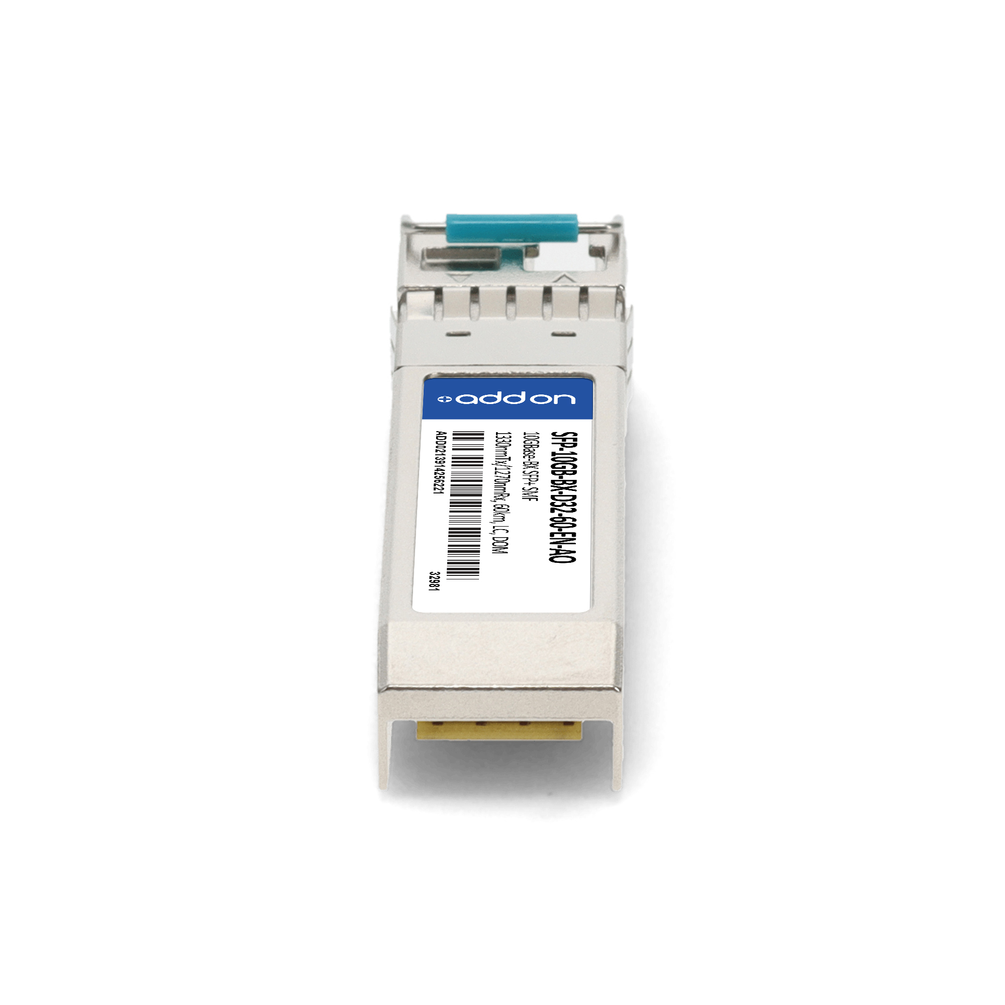 AddOn Networks LG-Ericsson Compatible TAA 10GBase-BX SFP+ Transceiver (SMF, 1330nmTx/1270nmRx, 60km, LC, DOM). SFP transceiver type: Fiber optic, Maximum data transfer rate: 10000 Mbit/s, Interface type: SFP+. Product colour: Silver, Form factor: SFP+, Brand compatibility: LG-Ericsson. Compliance certificates: Trade Agreements Act (TAA). Quantity per pack: 1 pc(s). Package width: 70 mm, Package depth: 121 mm, Package height: 30 mm