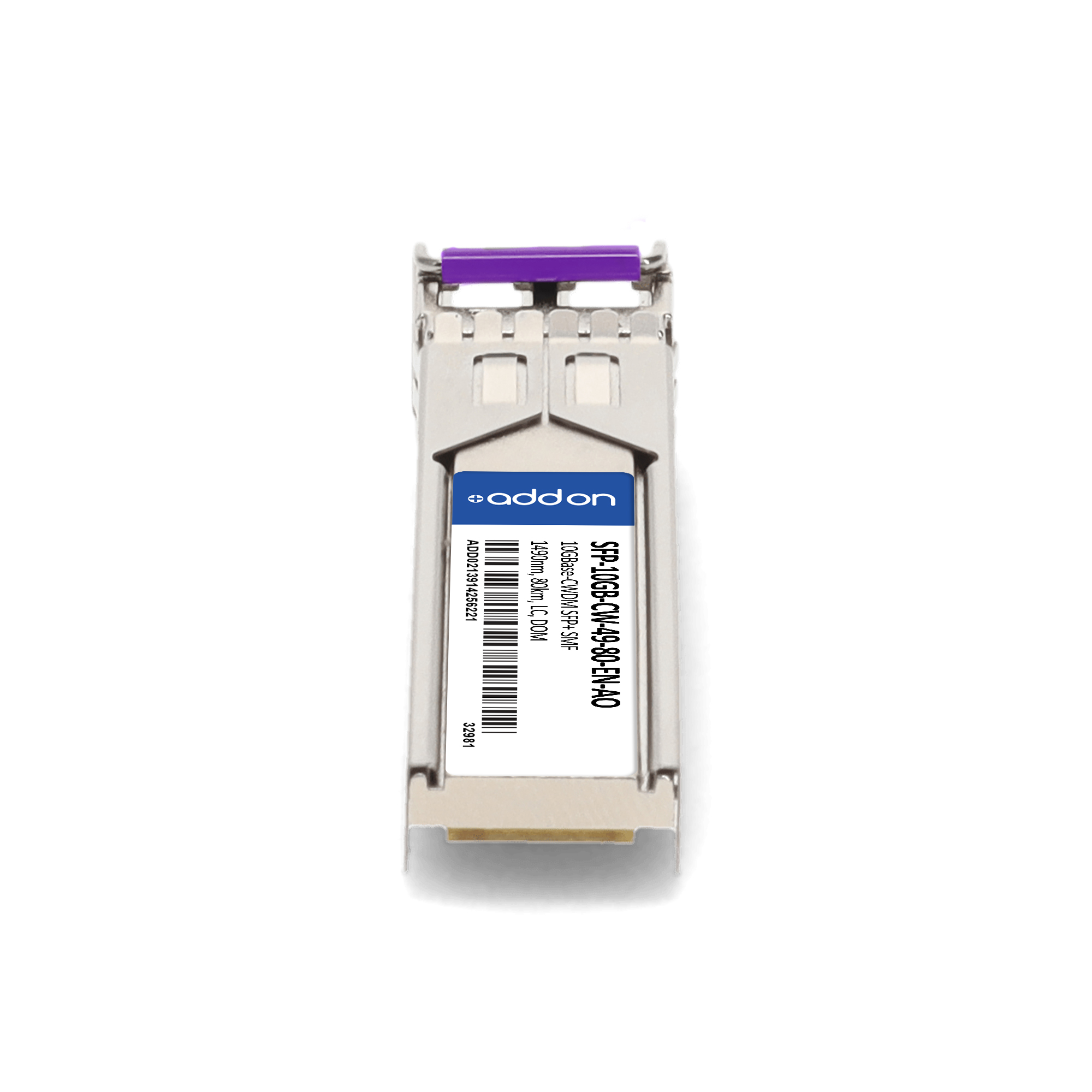 AddOn Networks LG-Ericsson Compatible TAA 10GBase-CWDM SFP+ Transceiver (SMF, 1490nm, 80km, LC, DOM). SFP transceiver type: Fiber optic, Maximum data transfer rate: 10000 Mbit/s, Interface type: SFP+. Form factor: SFP+, Brand compatibility: LG-Ericsson. Compliance certificates: Trade Agreements Act (TAA). Quantity per pack: 1 pc(s). Package width: 70 mm, Package depth: 121 mm, Package height: 30 mm