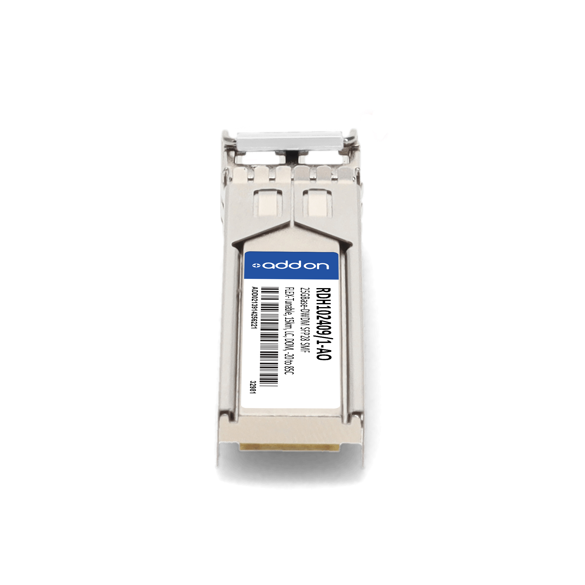 AddOn Networks LG-Ericsson RDH102409/1 Compatible TAA 25GBase-DWDM SFP28 Transceiver C-Band 100GHz (SMF, Flex-Tunable, 15km, LC, DOM, -20 to 85C). SFP transceiver type: Fiber optic, Maximum data transfer rate: 25000 Mbit/s, Interface type: SFP28. Form factor: SFP28, Brand compatibility: LG-Ericsson. Compliance certificates: Trade Agreements Act (TAA). Quantity per pack: 1 pc(s). Package width: 70 mm, Package depth: 121 mm, Package height: 30 mm